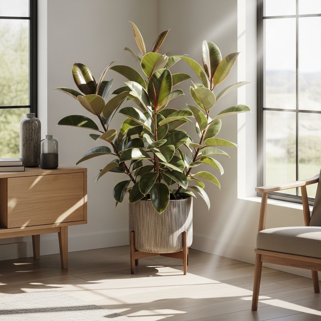 Rubber plants have large, shiny leaves that range from deep green to burgundy, creating a bold visual statement. They grow well in medium to bright indirect light and can reach impressive heights indoors. This plant works beautifully in modern or Scandinavian-inspired interiors, adding texture and richness. Rubber plants are perfect for placing near windows or using as floor-standing décor. Regular pruning encourages a fuller, bushier look while maintaining its aesthetic charm.