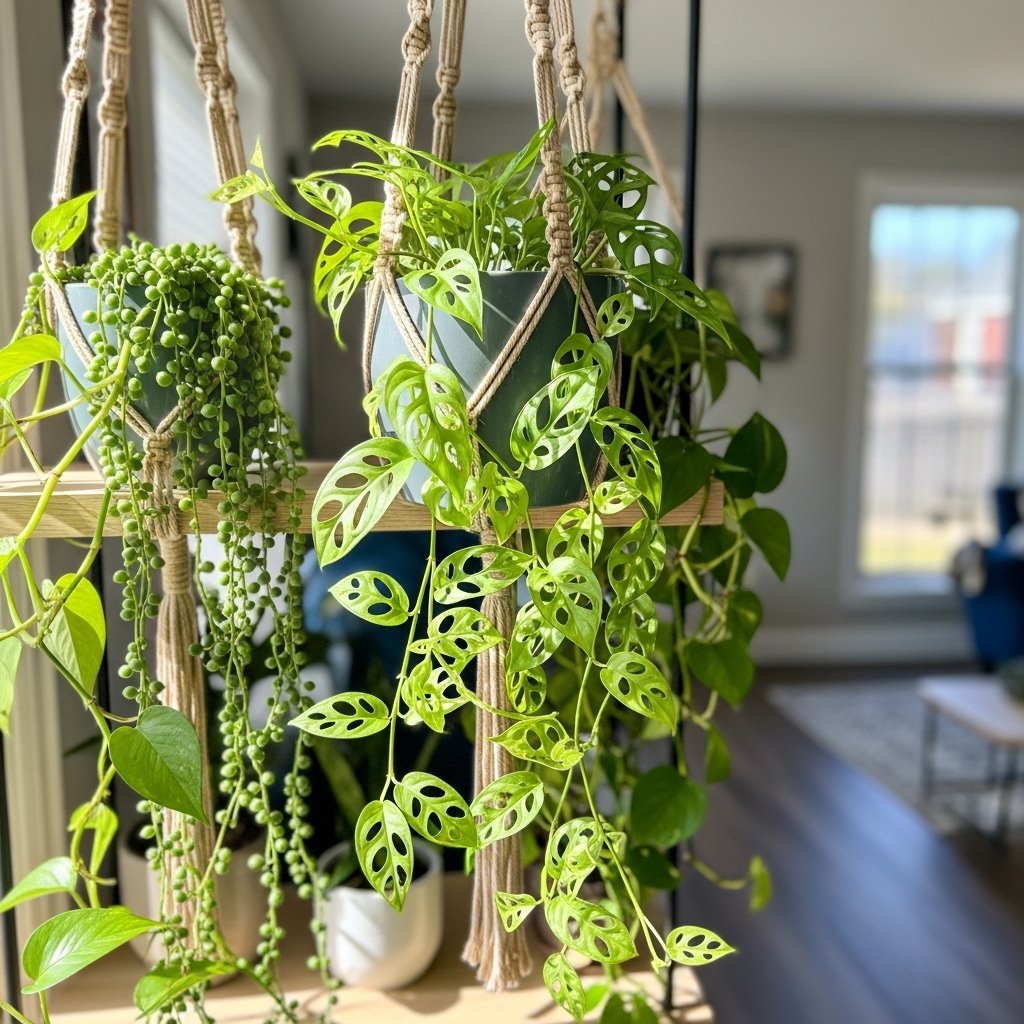 Monstera adansonii, or the “Swiss cheese vine,” is a smaller, more delicate version of the classic monstera. Its perforated leaves create a playful yet elegant look, making it ideal for shelves, hanging planters, or tabletops. This plant prefers bright, indirect light and moderate watering to maintain healthy foliage. Its trailing vines add depth and dimension to vertical spaces. Styling it alongside other trailing plants creates a layered, visually appealing indoor jungle.