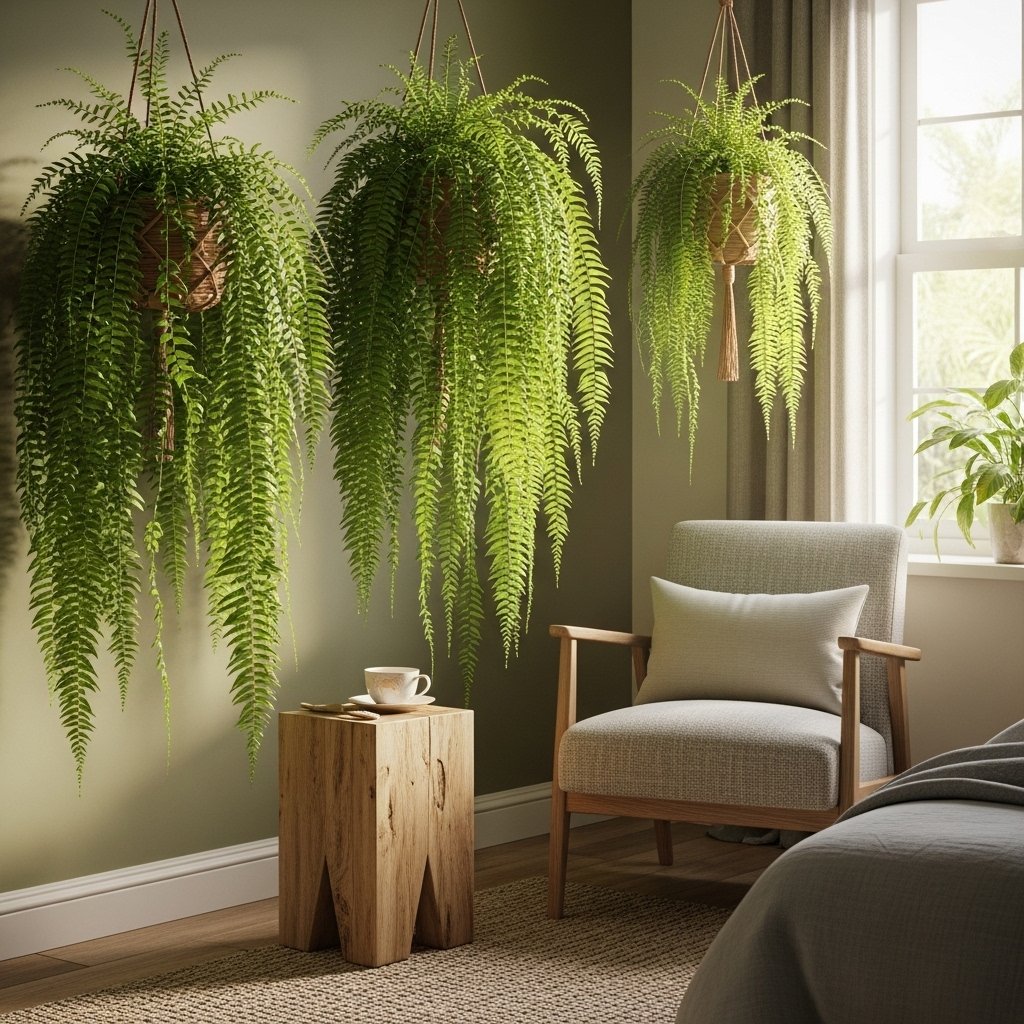 Ferns are excellent bedroom indoor plants for adding softness and natural texture. Their delicate leaves create a lush and calming atmosphere in any room. They prefer humid environments and indirect light, making them suitable for cozy bedroom corners. Ferns work well in hanging pots or decorative stands. They are perfect for creating a fresh forest-like feeling indoors.