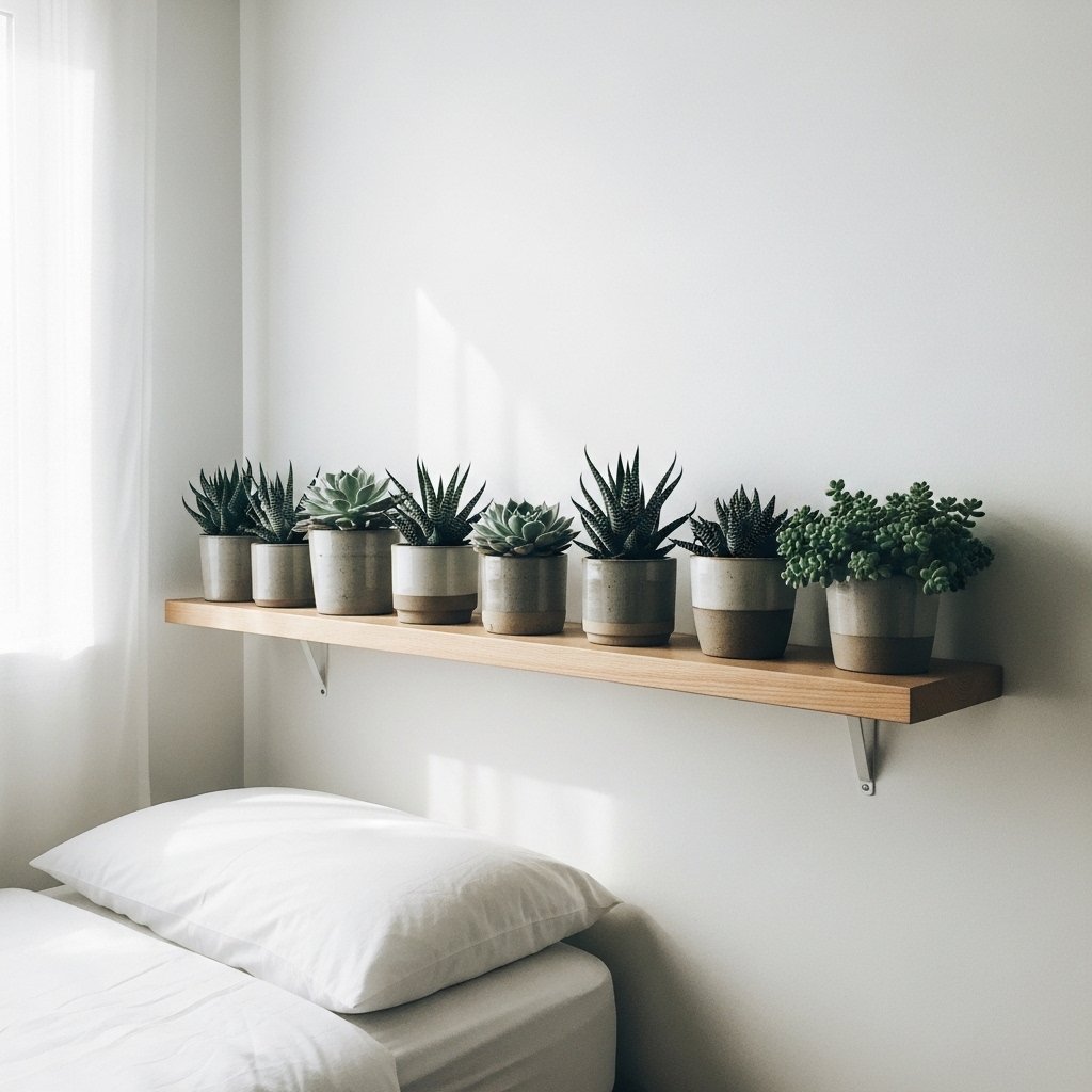 Succulents are small, stylish plants that are perfect for minimal bedroom setups. They require very little water and thrive in bright light conditions. These plants come in various shapes and colors, allowing creative arrangement on shelves or desks. Succulents are ideal for people who want low-maintenance greenery. They add a clean and modern touch without taking up much space.