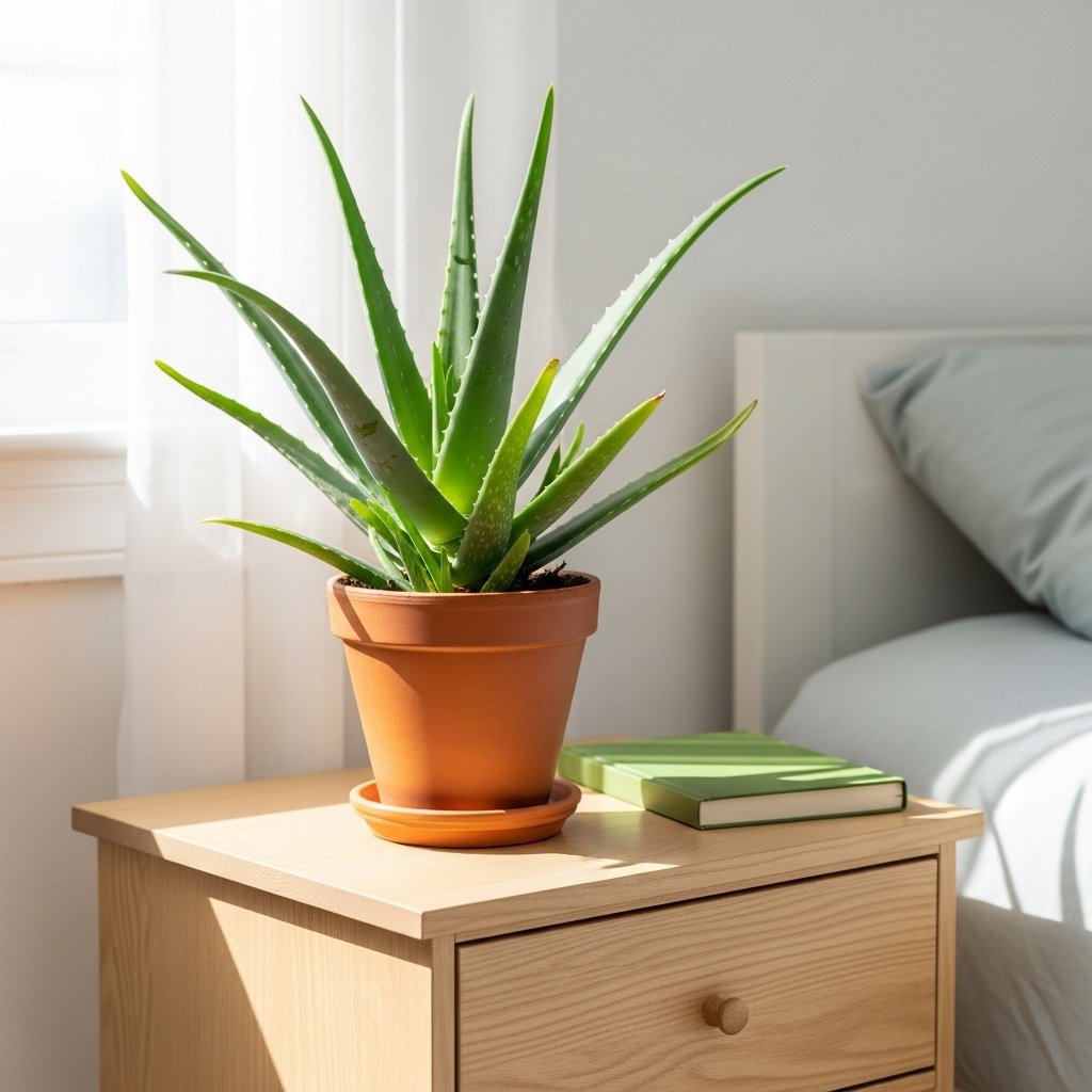 Aloe vera is a highly useful indoor plant that fits perfectly in bedroom environments. It is known for its healing gel, which can be used for skin care and minor burns. This plant prefers bright indirect light and requires minimal watering, making it easy to maintain. Its thick, green leaves add a fresh and natural look to bedside tables or windowsills. Aloe vera is both decorative and practical for everyday use.