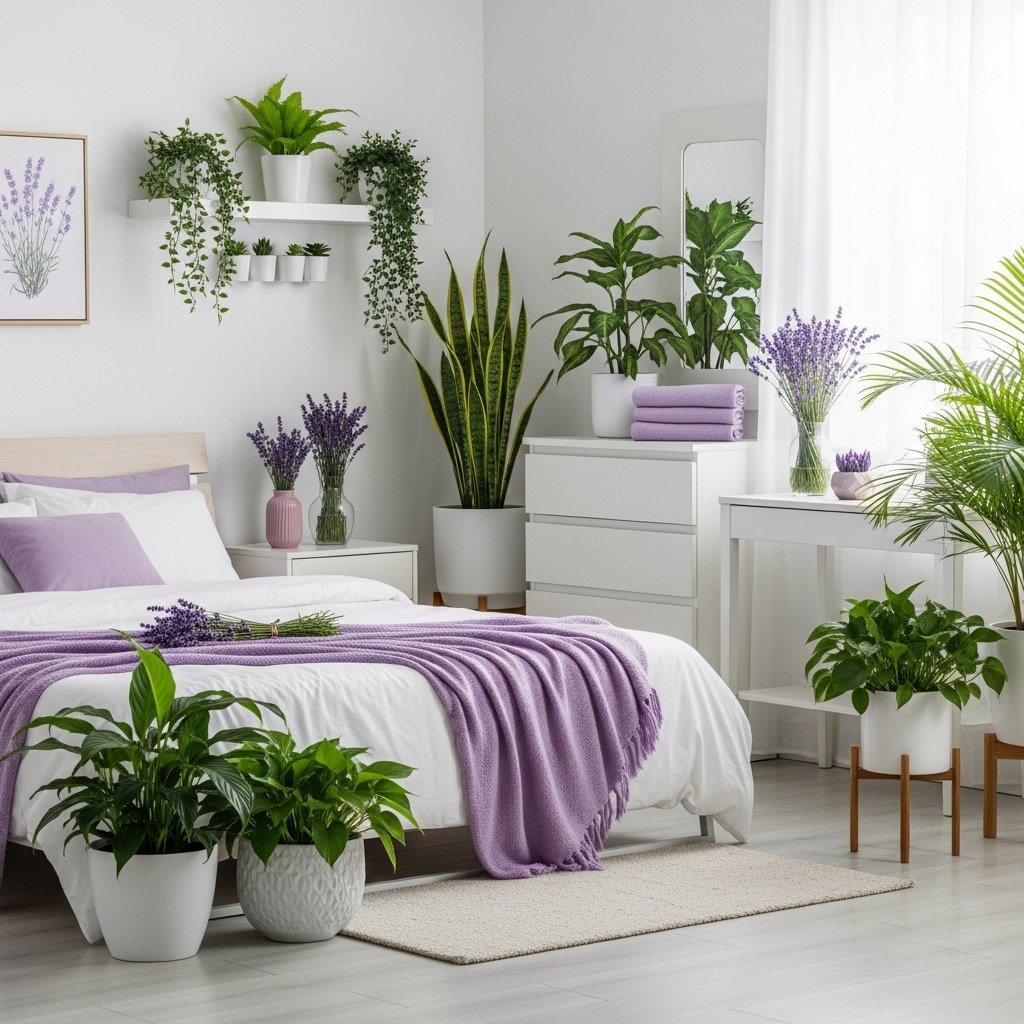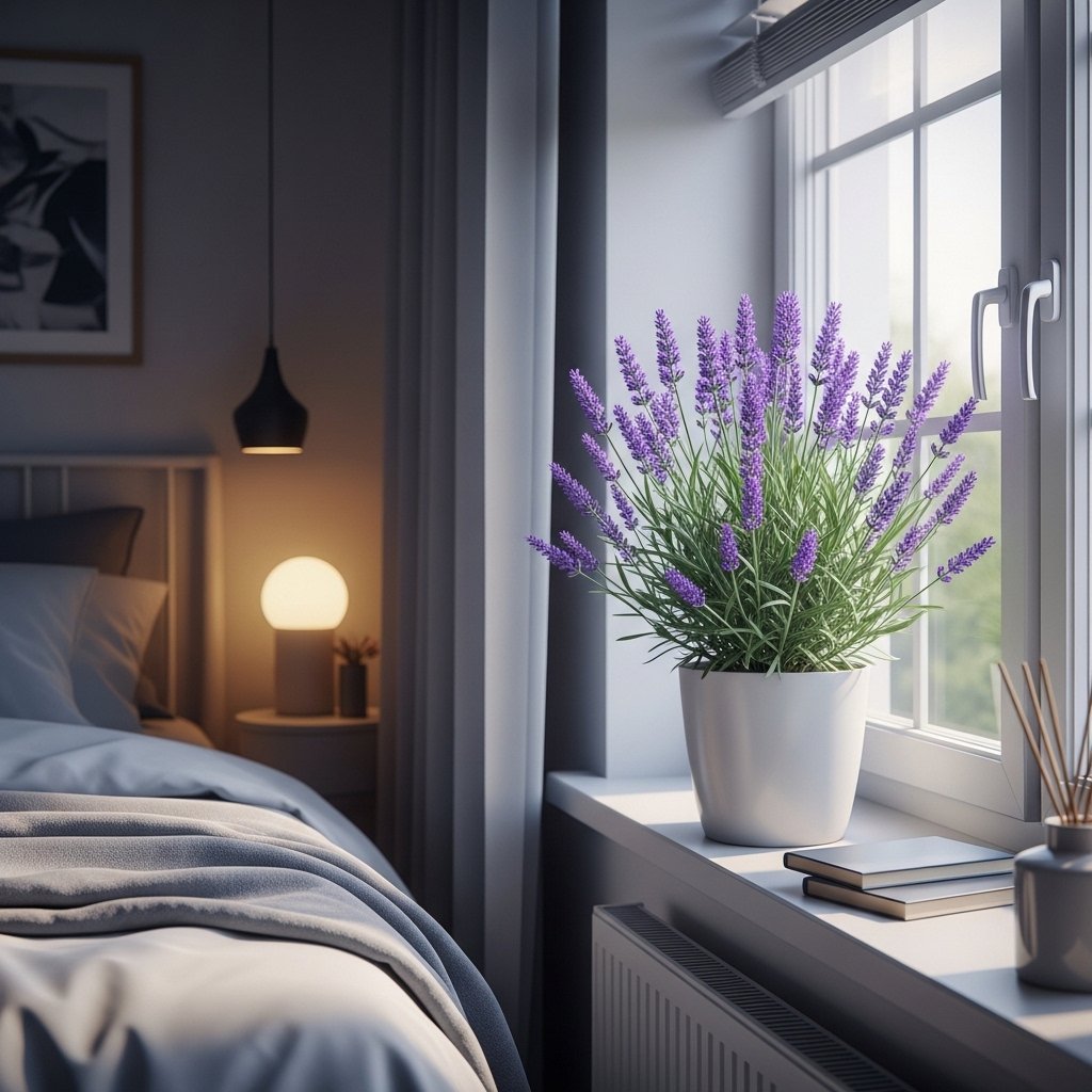 Combining lavender with other soft green plants creates a balanced and peaceful bedroom environment. This mix enhances both visual appeal and relaxation benefits. Lavender adds fragrance while green plants improve air quality and freshness. Together, they create a natural sleep-friendly setup that reduces stress. This combination is perfect for people who want a spa-like bedroom experience at home.