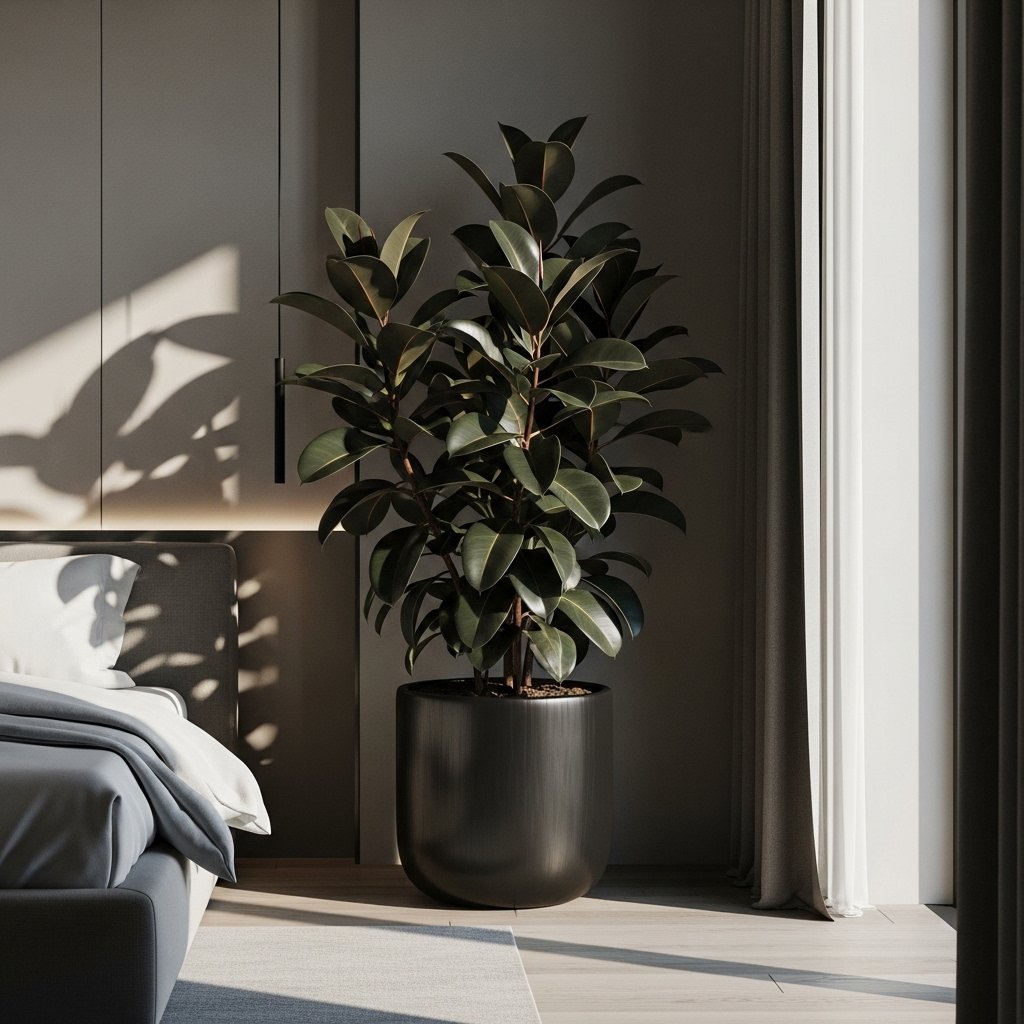 The rubber plant is a bold and stylish choice for bedroom décor. Its large, glossy leaves make a strong visual impact and add a luxurious feel to the room. It prefers indirect light and moderate watering, making it relatively easy to care for. This plant can grow tall, making it suitable for empty corners or large pots. It is ideal for those who want a dramatic and modern bedroom look.