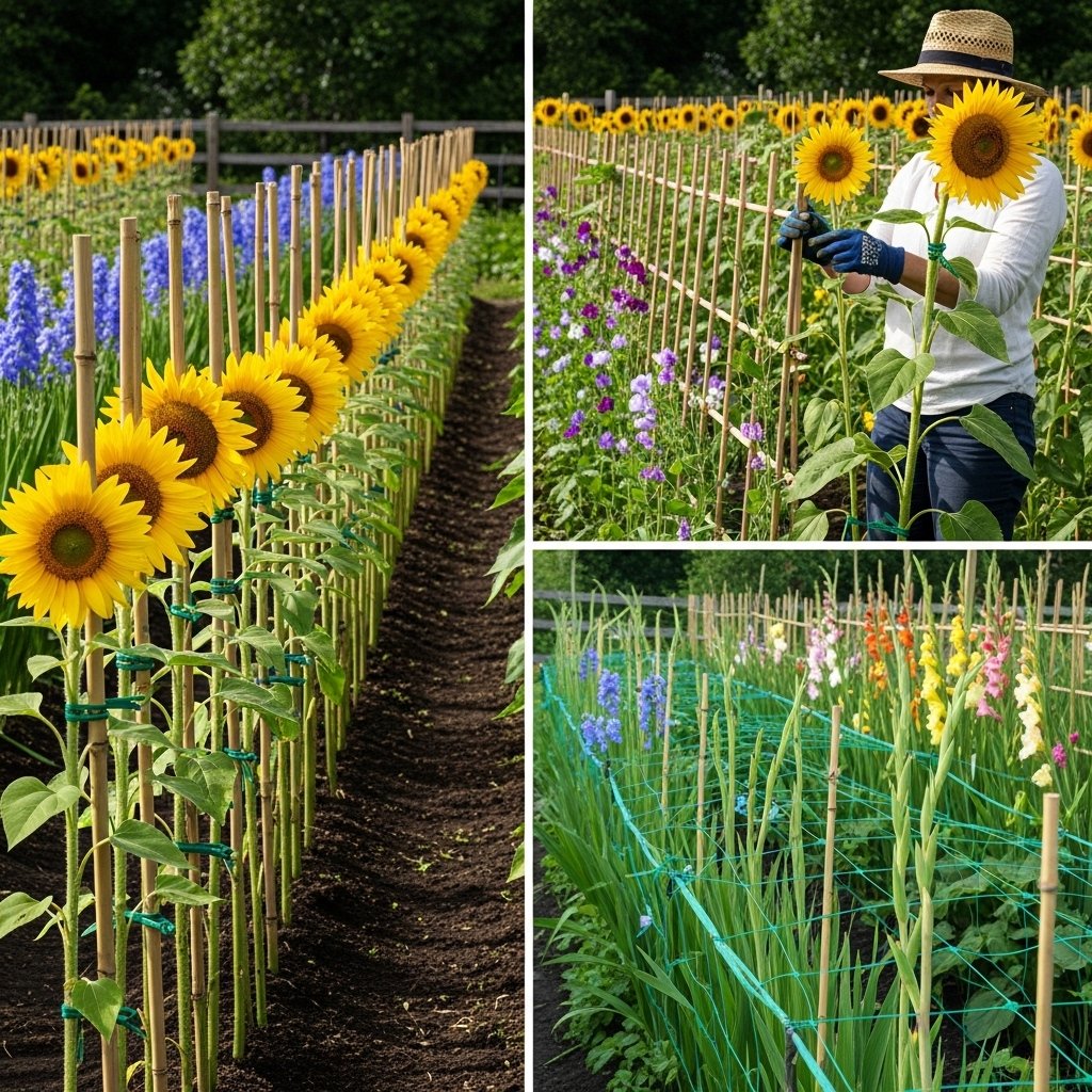 Certain flowers require support to prevent bending or breaking. Incorporate stakes, netting, or trellises into your layout for taller varieties. Installing supports early prevents damage later as plants grow heavier with blooms. Organized support systems keep rows tidy and accessible for cutting. This small addition greatly improves the quality of harvested flowers.