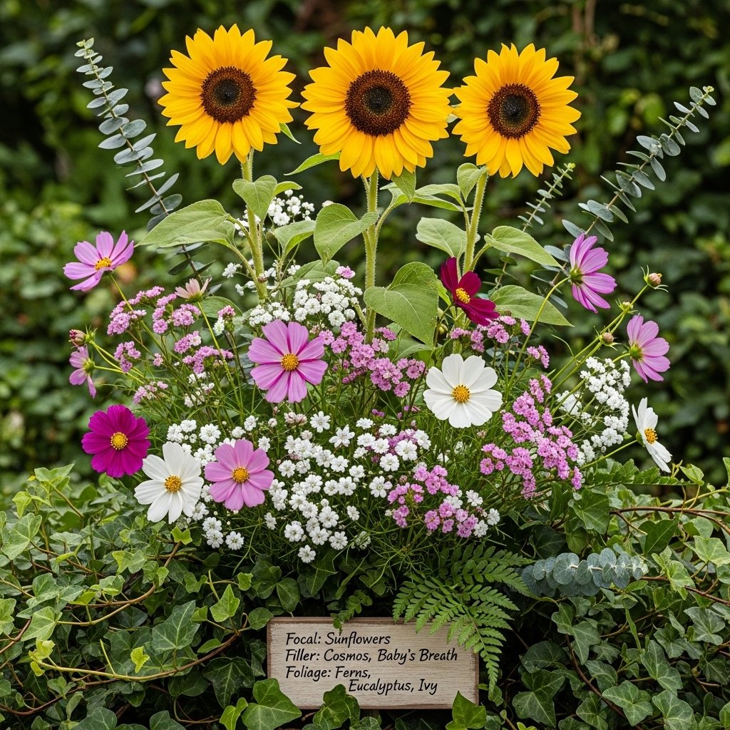 7. Include Focal Flowers, Fillers, and Foliage