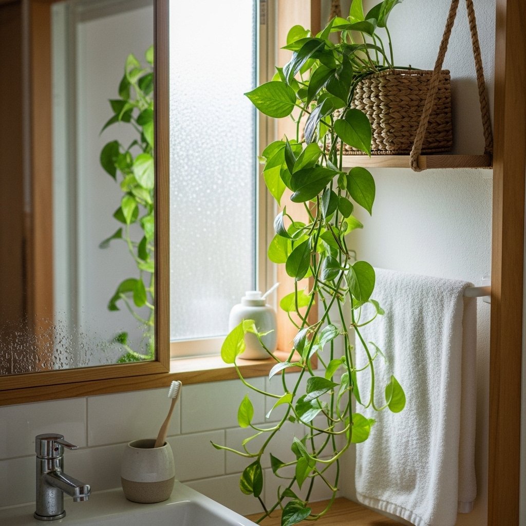 Pothos is a popular trailing plant that adapts well to low-light environments, making it ideal for bathroom spaces. Its heart-shaped leaves and cascading vines create a lush and decorative look when placed on shelves or hung in baskets. This plant grows quickly and is very forgiving, even if you forget to water it occasionally. Pothos thrives in humidity, which makes bathrooms a natural home for it. It’s a perfect choice for adding greenery without much effort.