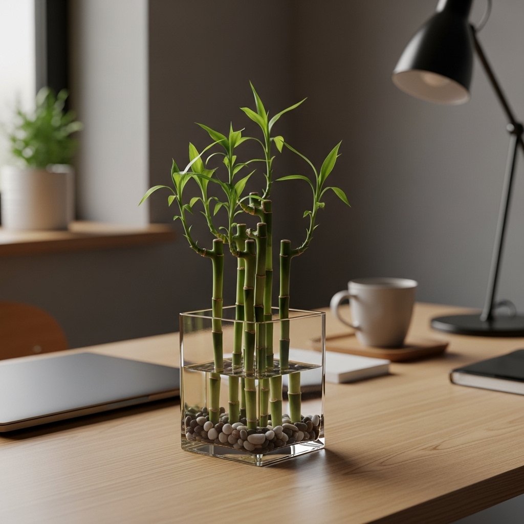 Lucky bamboo is a simple and elegant plant that thrives in low light environments. It can grow in water or soil, making it a flexible choice for indoor decor. This plant is often associated with good luck and positive energy. It requires very little maintenance and is perfect for desks or small spaces. Lucky bamboo adds a minimalist and calming vibe to any room.
