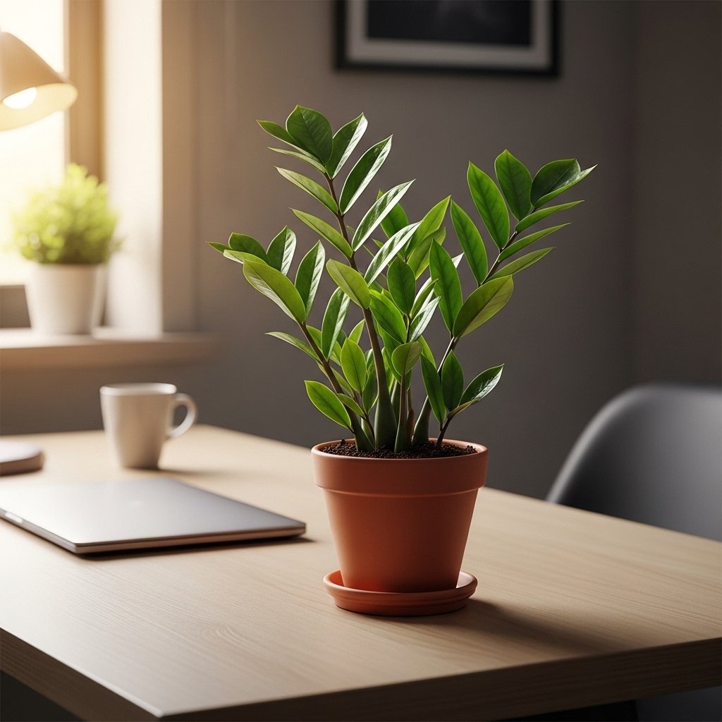 The ZZ Plant is famous for its glossy dark green leaves and strong adaptability to low light environments. It stores water in its thick rhizomes, allowing it to survive infrequent watering and shaded conditions. Even in a compact pot, the ZZ Plant maintains a neat and elegant appearance. Its slow growth makes it manageable for small spaces without frequent repotting. This plant is an excellent choice for offices, apartments, and low-light bedrooms.