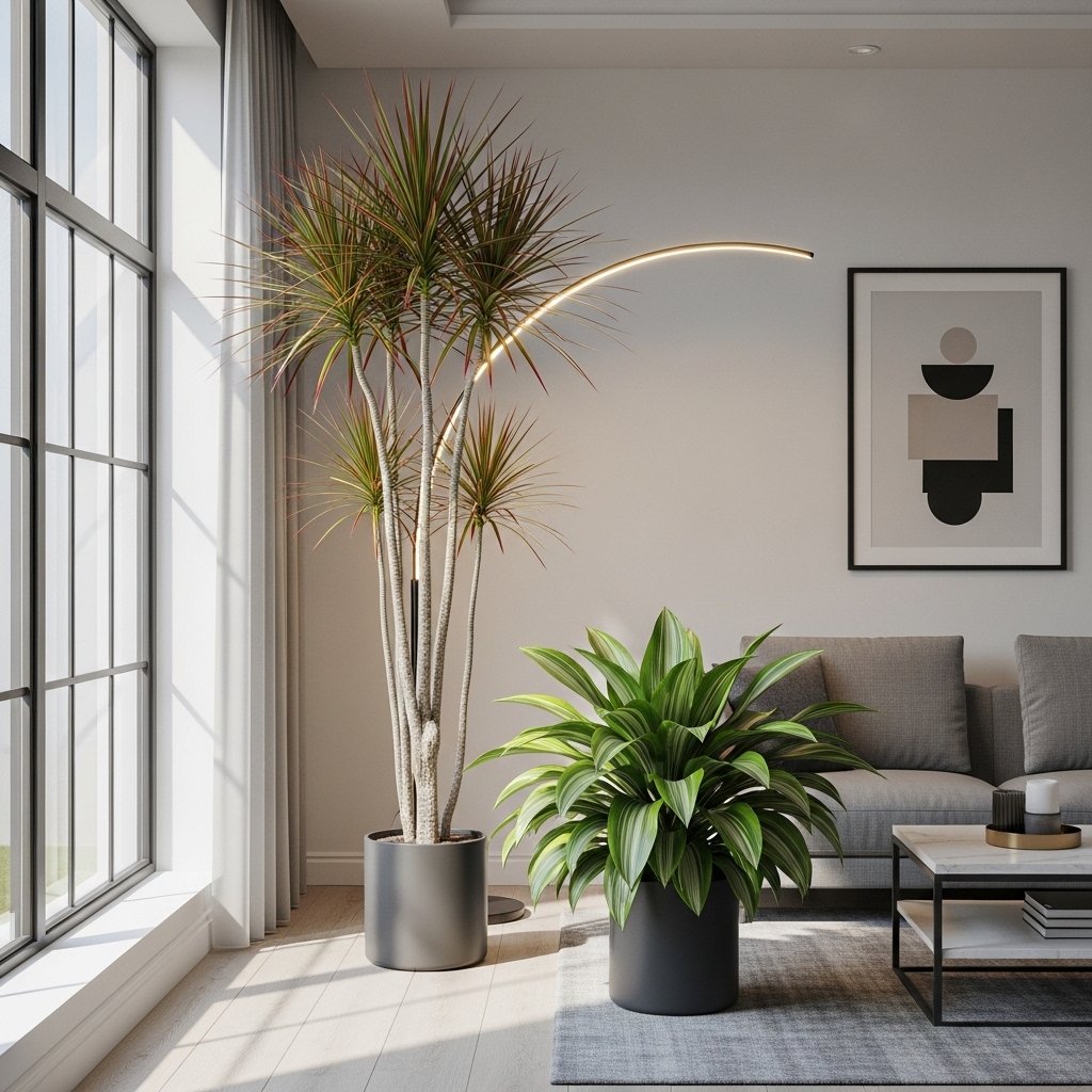 Dracaena plants are known for their striking foliage and tolerance for low light conditions. They come in several varieties, including Dracaena Marginata with spiky leaves and Dracaena Fragrans with broad, glossy leaves. These plants are easy to care for and require only occasional watering. Dracaenas can grow tall, making them perfect as statement pieces in living rooms or offices. They also contribute to healthier indoor air by filtering toxins, combining aesthetics with practicality.