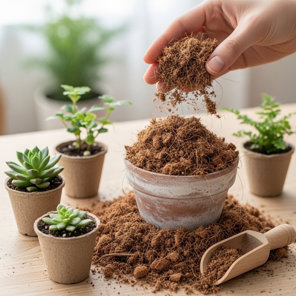 Coco coir is an eco-friendly alternative to peat moss and is made from coconut husks. It offers excellent water retention while maintaining good airflow around plant roots. This type of soil is sustainable and reusable, making it a popular choice among environmentally conscious gardeners. It also resists compaction better than peat moss over time. Coco coir works well for most indoor plants when mixed with other components.