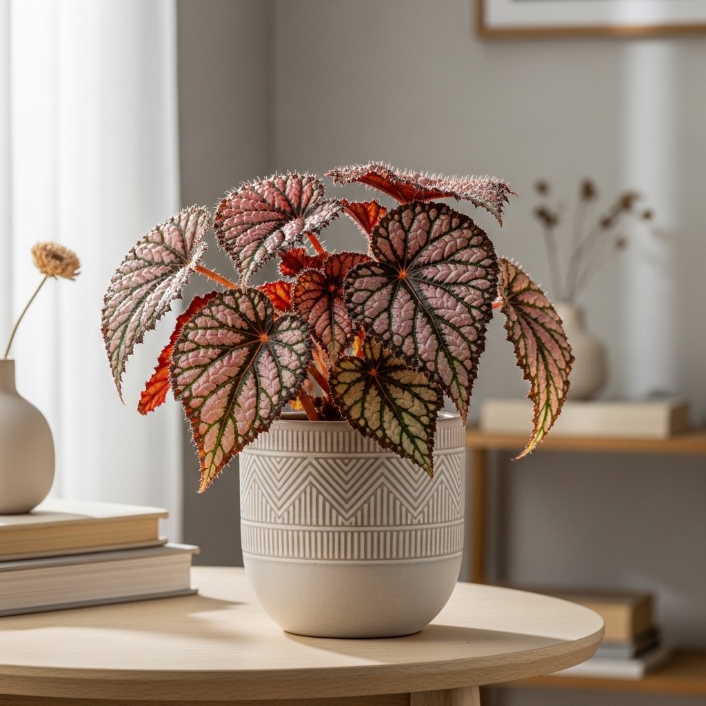 Pink Begonias are known for their intricate leaf patterns and vibrant pink tones. These plants add depth and texture to indoor spaces with their detailed foliage. They prefer indirect light and well-drained soil to thrive. Regular care ensures healthy growth and long-lasting beauty. This plant works well as a decorative piece in any room.