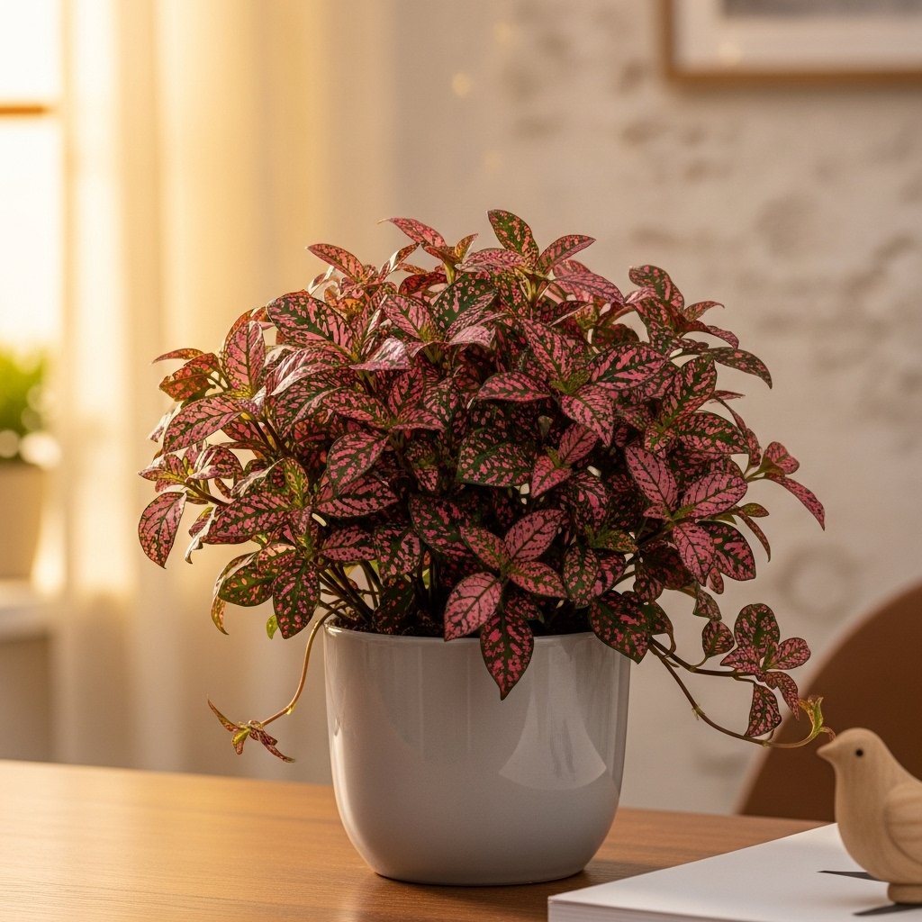 The Pink Nerve Plant features delicate leaves with vibrant pink veins running through them. Its compact size makes it ideal for small spaces like desks and side tables. This plant prefers high humidity and indirect light for optimal growth. Keeping the soil consistently moist helps maintain its health. It adds a soft and elegant touch to indoor plant collections.