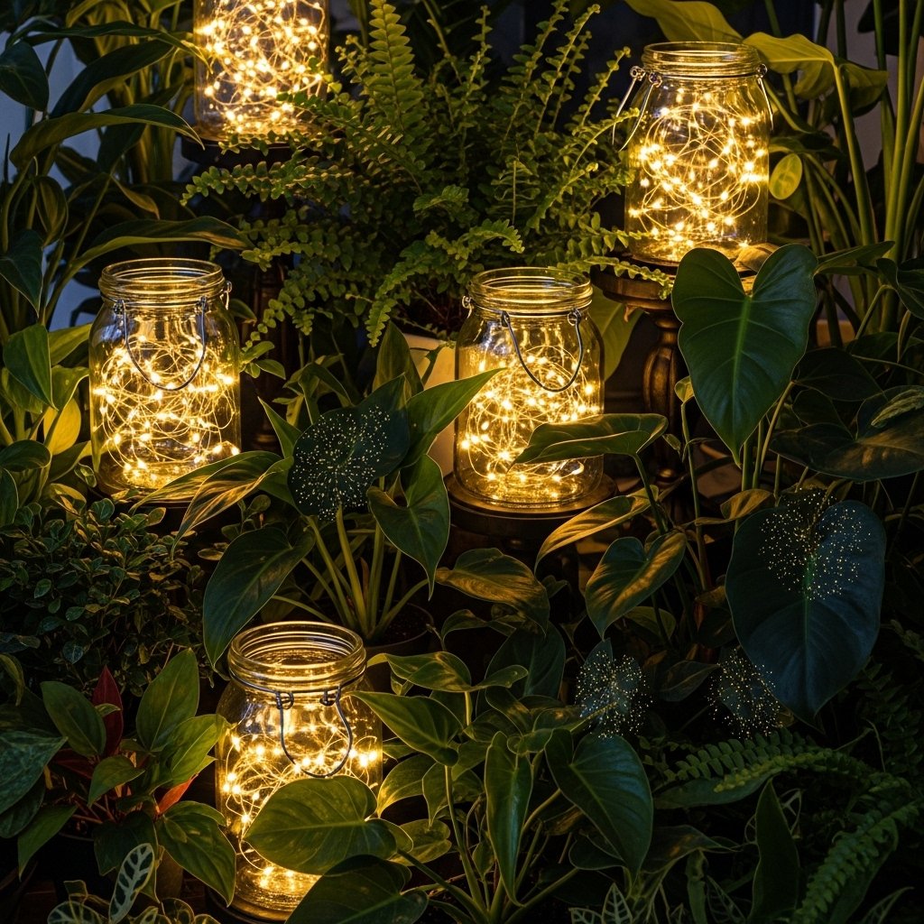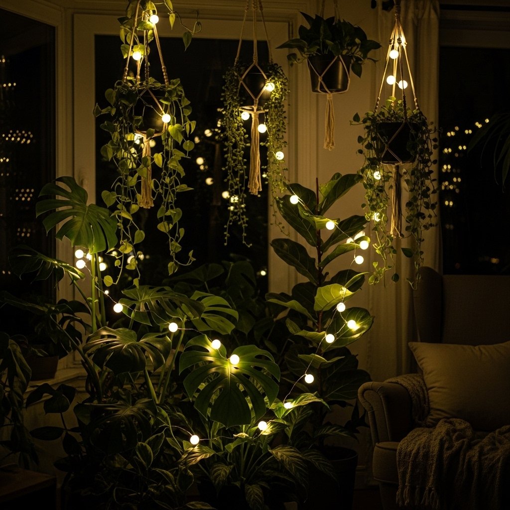 Fairy lights are a perfect addition to enhance the magical feel of your indoor garden. Wrap them around plants, shelves, or window frames for a glowing effect. Their soft twinkle complements lantern lighting beautifully. Choose warm white tones for a natural and cozy appearance. This simple addition dramatically enhances the atmosphere.