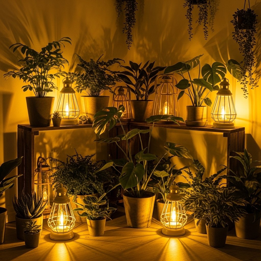 Blog > Home > Indoor Plants & Home Decor > Cozy Indoor Garden with Plants and Lanterns: A Warm and Relaxing Home Escape