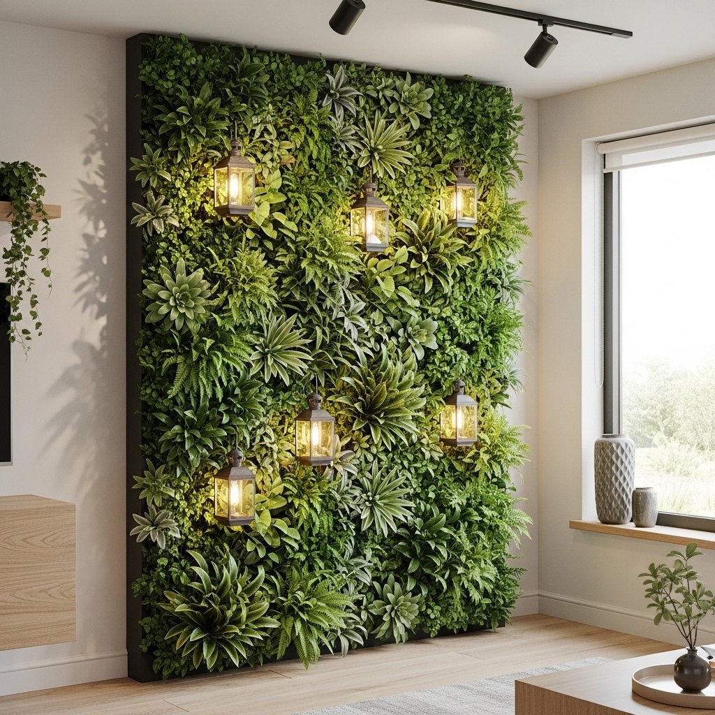 If space is limited, vertical plant walls are a perfect solution for a lush indoor garden. Use wall-mounted planters or shelves to grow greenery upward instead of outward. This saves floor space while maximizing visual impact. Add small lanterns between the plants for a glowing vertical effect. The result is a stunning living wall filled with warmth and life.