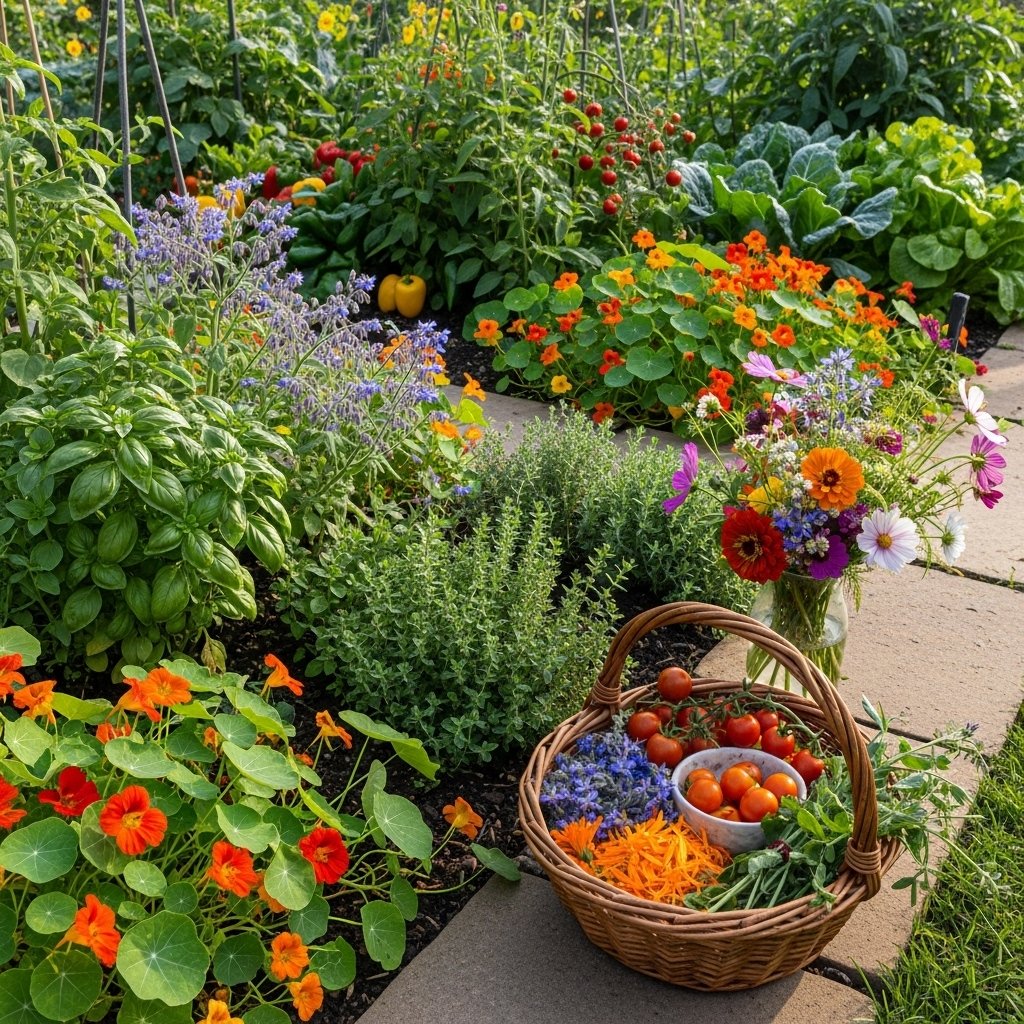Combining edible plants with cut flowers maximizes both beauty and utility in your garden. Flowers like nasturtiums, calendula, and borage pair well with herbs and vegetables. This design allows you to harvest flowers for bouquets and garnishes, while also producing fresh produce. It’s a smart, multi-purpose approach that’s practical for smaller gardens. The mix of edible and decorative plants creates a colorful, functional, and fragrant space.