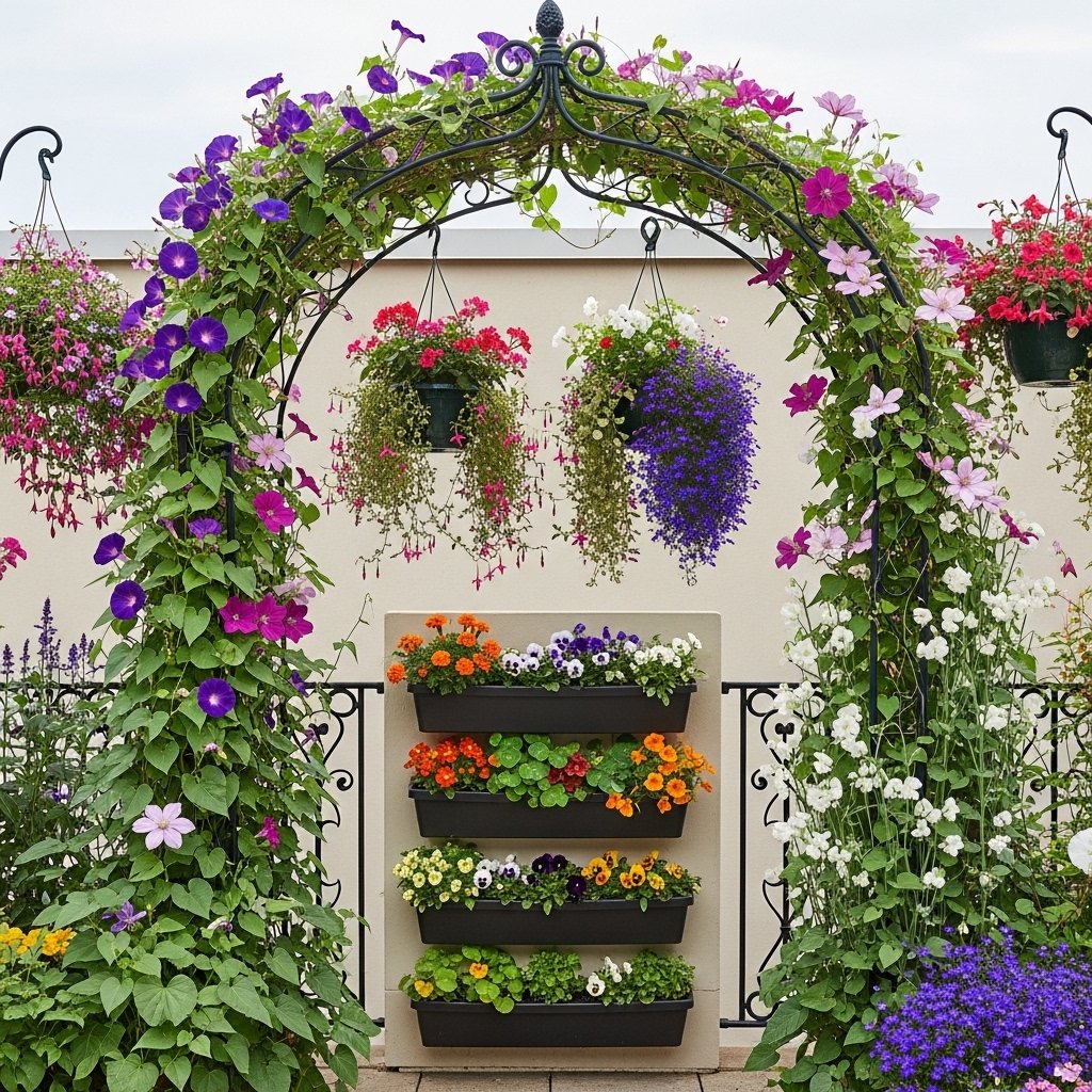 Vertical gardening adds a creative twist to traditional flower beds, especially for small spaces. Use trellises, arches, or hanging baskets to grow climbing or trailing flowers. Morning glories, sweet peas, and clematis are excellent options for vertical displays. This design not only saves space but also creates a visually dynamic garden perfect for photos and cut flower arrangements. Layering plants vertically can make even a compact garden look lush and full of life.