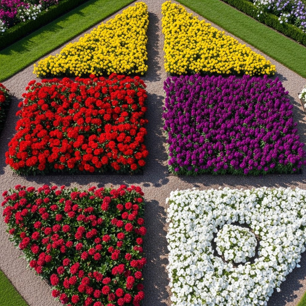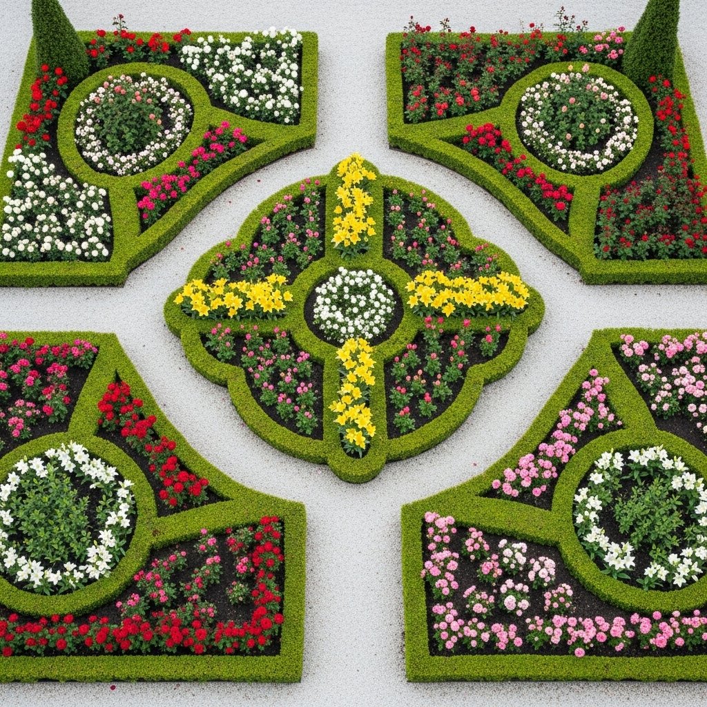 A formal geometric cut flower garden uses symmetry and structured layouts for a polished appearance. Square or rectangular beds, neatly edged paths, and evenly spaced plantings create a clean and sophisticated look. Flowers like roses, tulips, and lilies work well for structured designs due to their uniform growth habits. This approach is perfect for gardeners who enjoy order and elegance while still harvesting beautiful blooms. It’s ideal for front yards or formal garden settings.