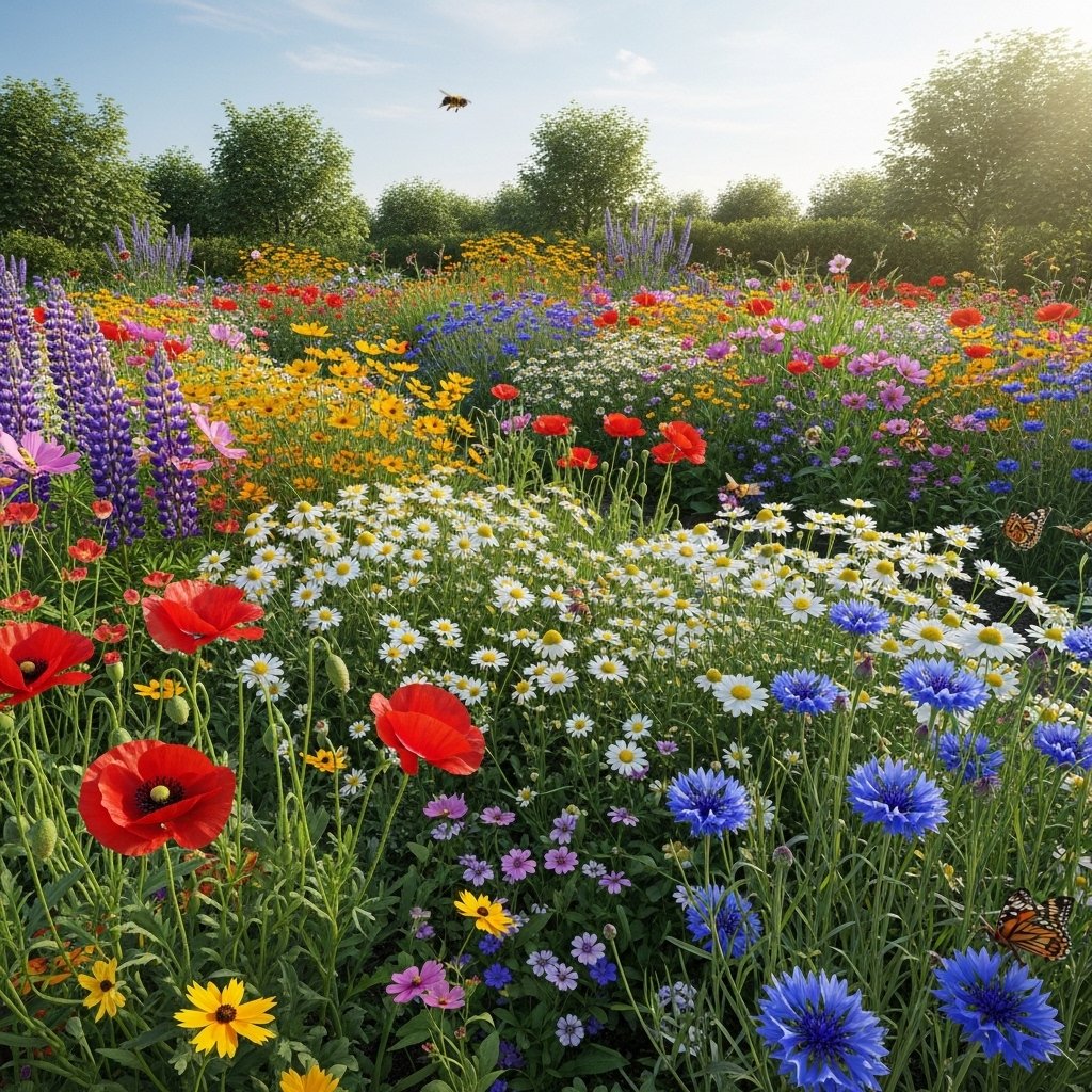 Wildflower gardens are perfect for a natural, effortless look that requires minimal maintenance. Mixing native wildflowers like poppies, daisies, and cornflowers produces a colorful and textured garden. These flowers are hardy, attract pollinators, and produce long stems ideal for bouquets. A wildflower garden often blooms in waves, creating dynamic, ever-changing floral arrangements. This design is ideal for gardeners who love a low-fuss, picturesque garden with a relaxed vibe.