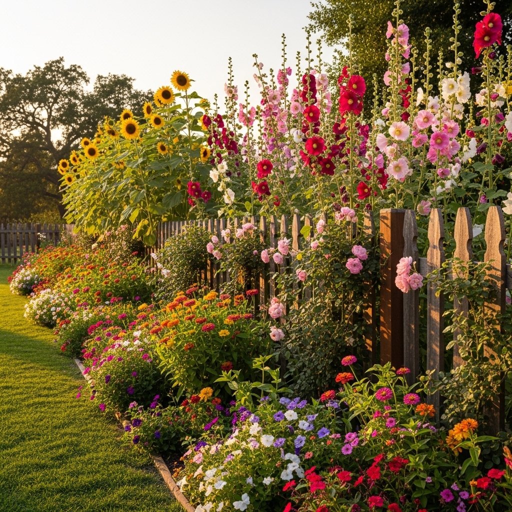 A fence line flower garden is a smart landscaping idea that maximizes unused space in the yard. Tall flowers like sunflowers, hollyhocks, and delphiniums can grow along fences to create a colorful natural border. This arrangement adds height and visual interest while leaving the rest of the garden open for shorter flowers. The vertical display makes the garden feel fuller and more dynamic. It’s a great option for small yards that need efficient planting space.