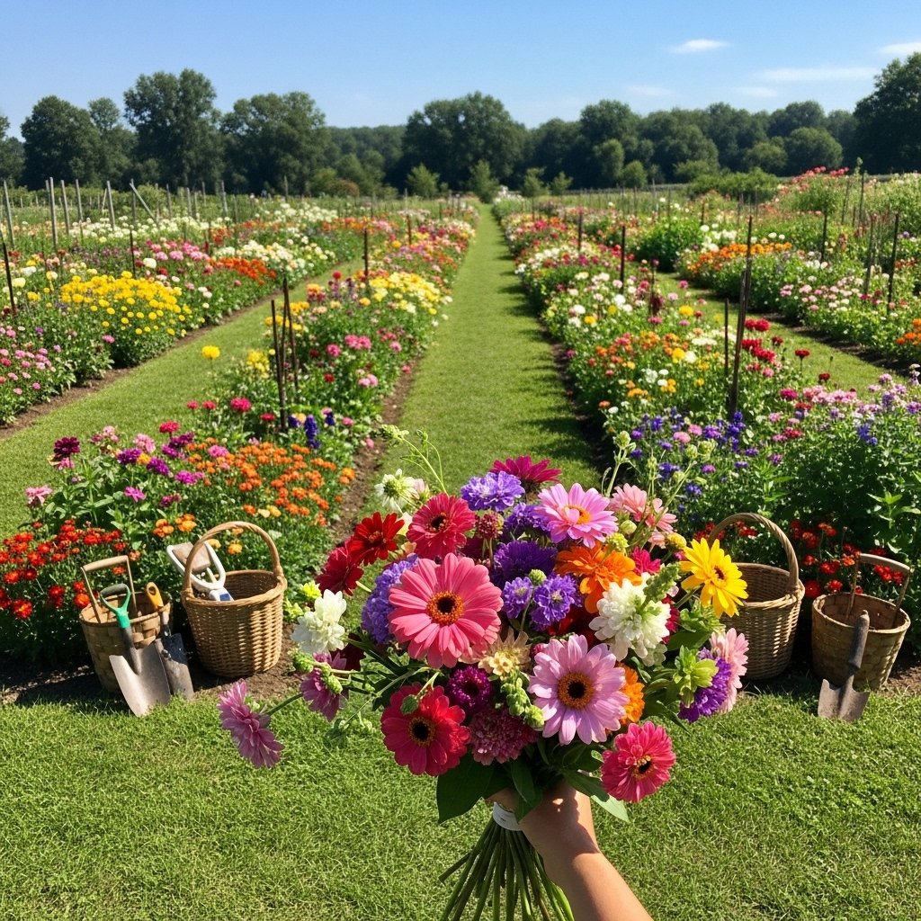 A cut flower garden is a special type of garden where flowers are grown mainly to be cut and used in bouquets or indoor arrangements. These gardens usually include a variety of colorful flowers that bloom at different times of the year. The purpose is to have fresh flowers available regularly for decoration while still keeping the garden attractive and well organized.