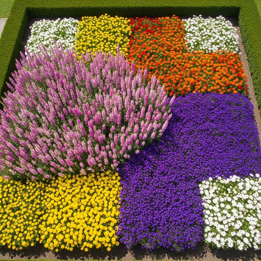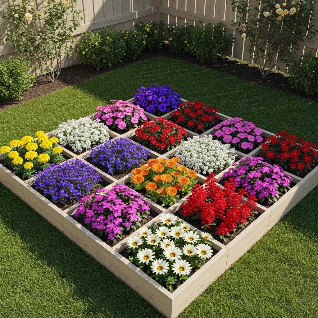 A grid layout is perfect for small backyard gardens or suburban spaces. Dividing your garden into square-foot sections helps maximize planting density and organization. Each grid can hold a specific flower type, making crop rotation simple in future seasons. In zone 6b, this method helps manage soil health and reduces overcrowding. A grid system also improves airflow, lowering the risk of fungal diseases in humid summers.