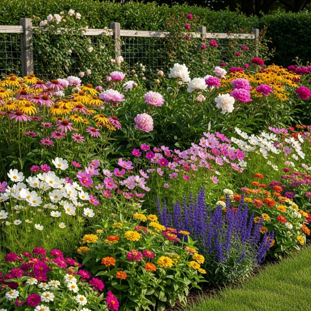 A perennial border layout combines long-lasting plants with seasonal annual fillers. Hardy perennials such as peonies, coneflowers, and black-eyed Susans thrive in zone 6b winters. Plant taller perennials at the back of borders and shorter varieties toward the front for easy cutting access. Adding annuals between perennials fills empty spaces during peak bloom times. This layout offers structure, longevity, and lower maintenance over time.