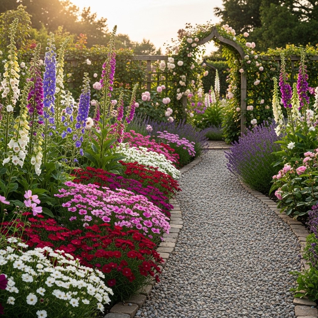 A cottage-style layout creates a romantic and slightly informal cut flower garden design. Flowers are planted densely but organized by height to prevent shading. In zone 6b, cold-tolerant blooms like foxglove, delphinium, and dianthus perform beautifully in this setting. Winding paths between beds allow easy harvesting while maintaining charm. This layout blends productivity with aesthetic appeal for home gardeners.