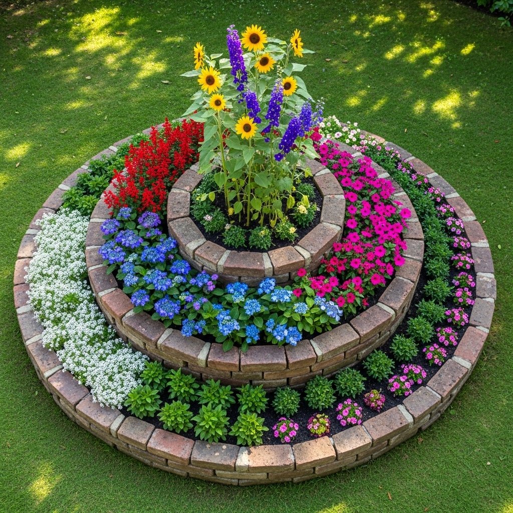 A spiral layout offers a creative and visually striking way to grow cut flowers. The spiral design naturally creates microclimates, with taller plants placed in the center and shorter ones along the outer edges. This layout maximizes vertical space while adding artistic appeal to your garden. It works well in compact areas where space must be used creatively. The spiral layout combines functionality with eye-catching design.