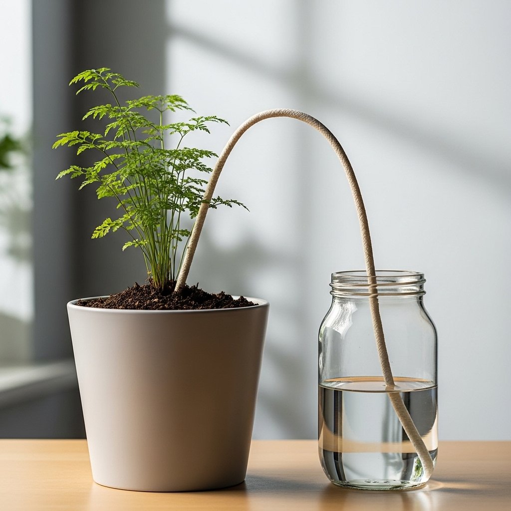 A wick watering system uses a piece of string or cotton rope to transfer water from a container to the plant soil. Place one end of the wick in a water-filled jar and bury the other end in the soil. The plant will absorb water as needed through capillary action. This method works especially well for indoor plants that prefer consistent moisture. It’s simple, affordable, and ideal for beginners.
