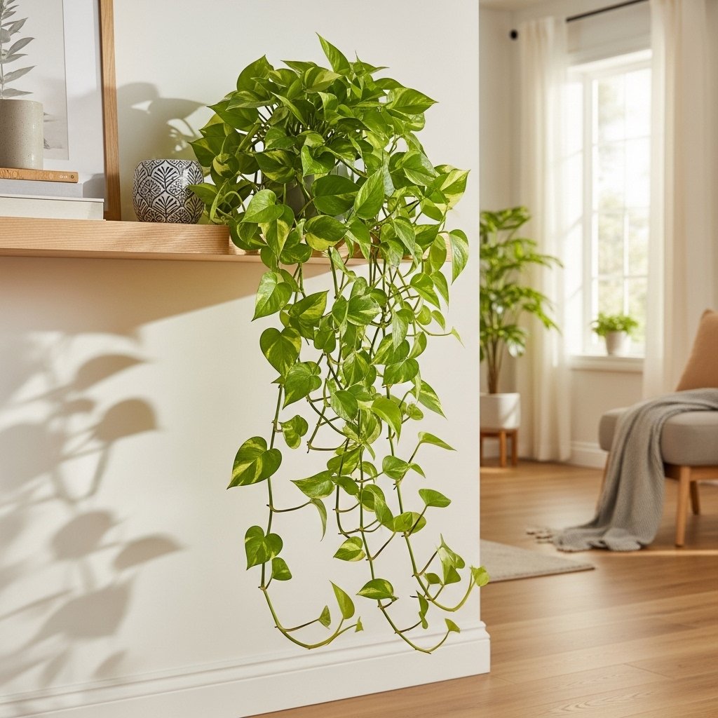 Pothos is a popular choice for beginners because of its fast growth and resilience. Its trailing vines and heart-shaped leaves create a lush and decorative appearance. This plant can tolerate low light and irregular watering, making it extremely easy to care for. Pothos can be placed on shelves or allowed to hang for a cascading effect. It’s a perfect option for adding greenery to small spaces.