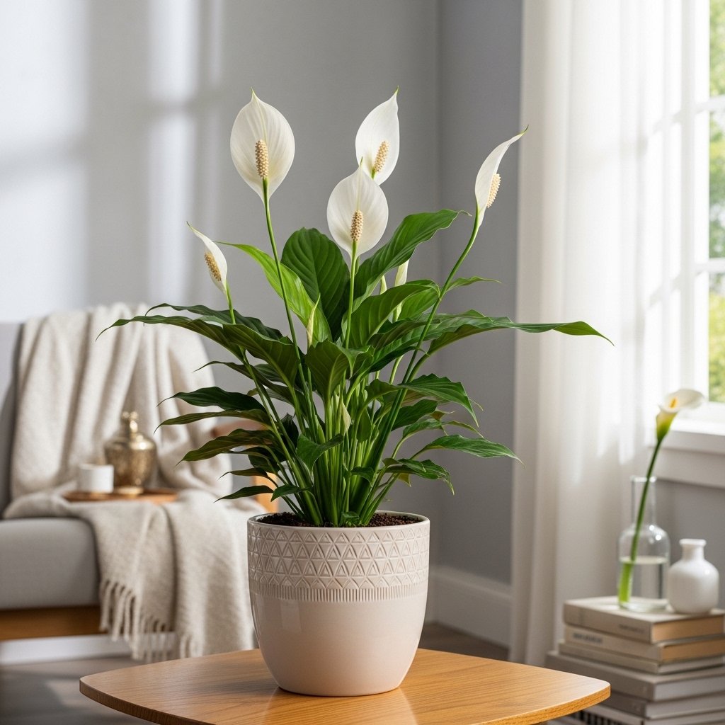 Peace lilies are elegant indoor plants that produce beautiful white blooms. They prefer low to medium light and will visibly droop when they need water, making care simple for beginners. This plant not only enhances decor but also contributes to cleaner indoor air. Regular watering and occasional misting help maintain its health. Peace lilies are perfect for creating a calm and soothing atmosphere.