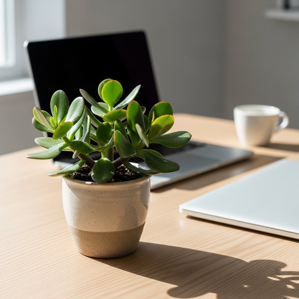 Jade plants are small succulents that are easy to grow and maintain. They require bright light and infrequent watering, making them perfect for beginners. Their thick, rounded leaves give them a unique and charming appearance. Jade plants are often associated with good luck and prosperity. They are perfect for desks, windowsills, or small spaces.
