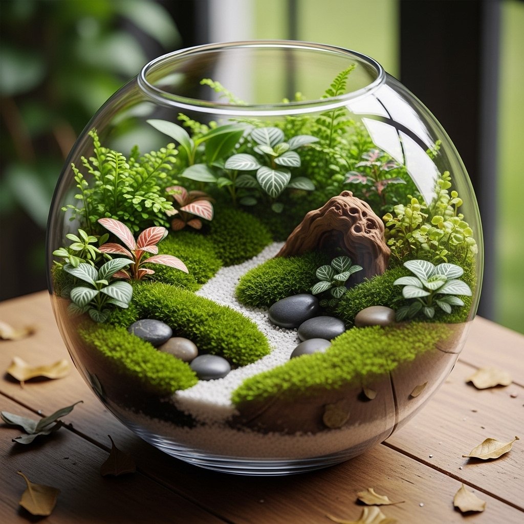 Terrariums are a unique and creative way to display indoor plants in small spaces. Glass containers filled with soil, stones, and tiny plants create a miniature garden effect. These low-maintenance setups are ideal for desks, coffee tables, or shelves. You can customize your terrarium with decorative elements like moss or figurines. It is a fun and artistic indoor gardening idea suitable for beginners.
