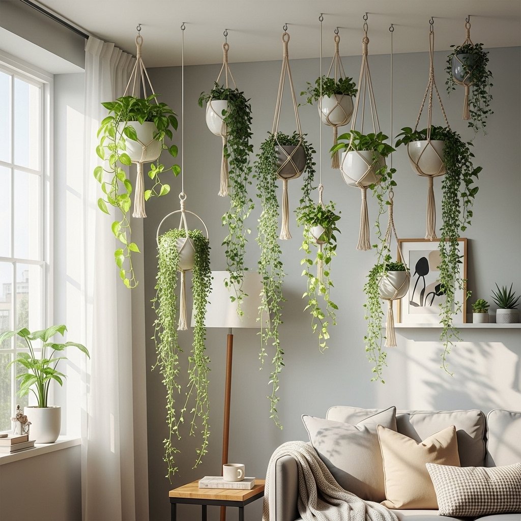 Hanging planters are one of the best home gardening ideas indoor plants for maximizing space in smaller homes. By suspending plants from the ceiling or wall hooks, you free up valuable floor and shelf space. Trailing plants like pothos or ivy look especially beautiful cascading down from hanging baskets. This setup adds a natural, airy feel to your interior design while keeping things organized. It is a perfect solution for apartments where space is limited but style is important.
