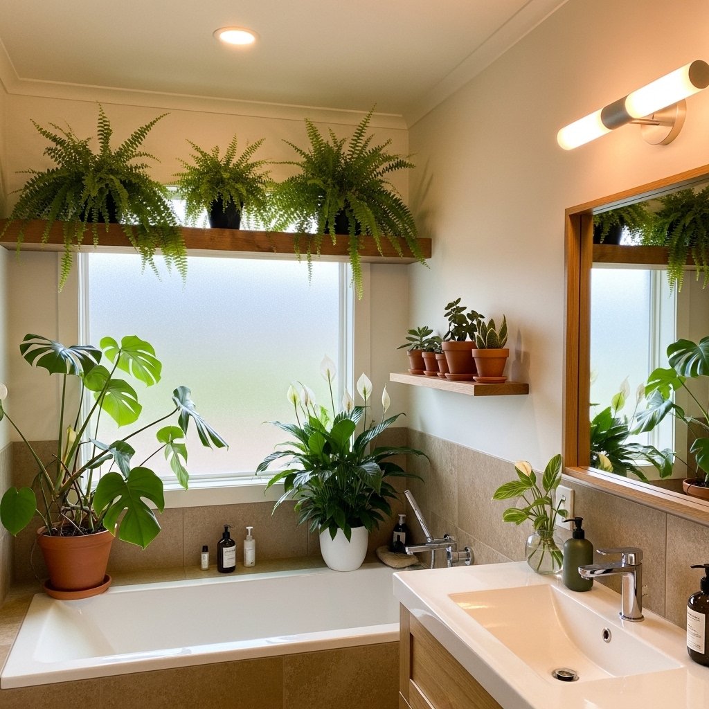 Bathrooms can be transformed into refreshing green spaces with the right indoor plants. Moisture-loving plants like ferns and peace lilies thrive in humid environments. Placing plants on shelves, counters, or hanging hooks can enhance the spa-like feel of your bathroom. Soft lighting combined with greenery creates a calming and relaxing ambiance. This idea is perfect for turning an ordinary bathroom into a mini retreat.