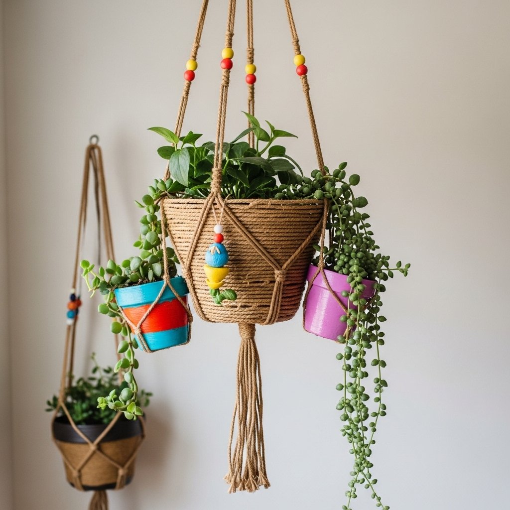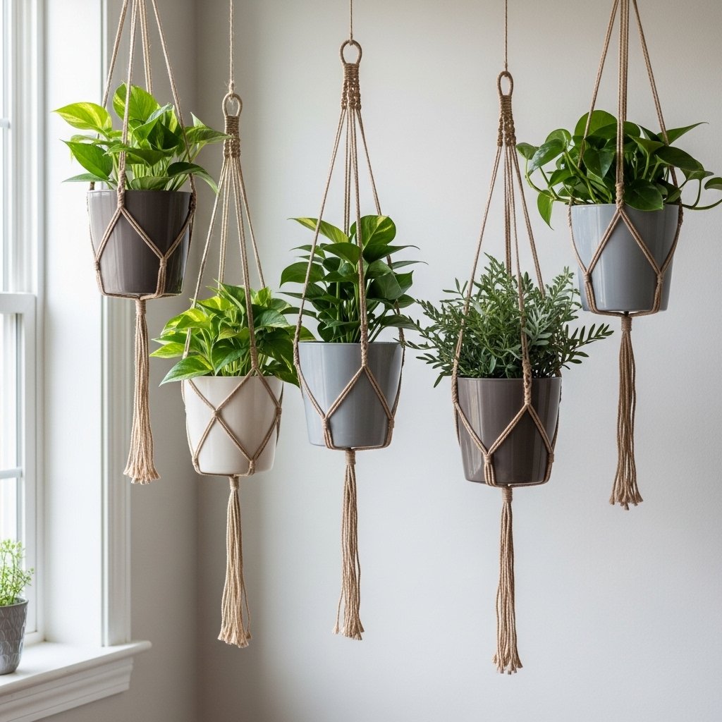 Macramé holders are a stylish and trendy way to hang indoor plants. You can create your own using cotton rope and simple knotting techniques. This adds a handmade and decorative touch to your basket. Macramé designs can be customized to match your home décor. It’s a great way to combine creativity with functionality.