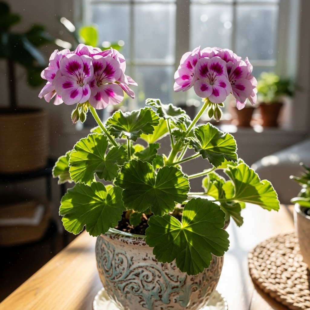 This plant has a strong floral fragrance that naturally repels mosquitoes. It is often used as an ornamental plant due to its attractive leaves and flowers. The scent becomes stronger when the leaves are gently touched. It grows well in pots near sunny indoor spaces. It also adds a decorative touch to your home interior.