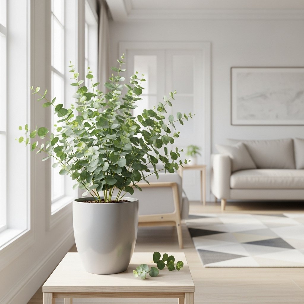 Eucalyptus is widely known for its medicinal and insect-repelling properties. Its strong aroma helps keep mosquitoes and other bugs away from indoor areas. It grows best in bright light and needs regular care to thrive indoors. The leaves can also be used in natural remedies and steam inhalation. This plant brings both health and protection benefits.