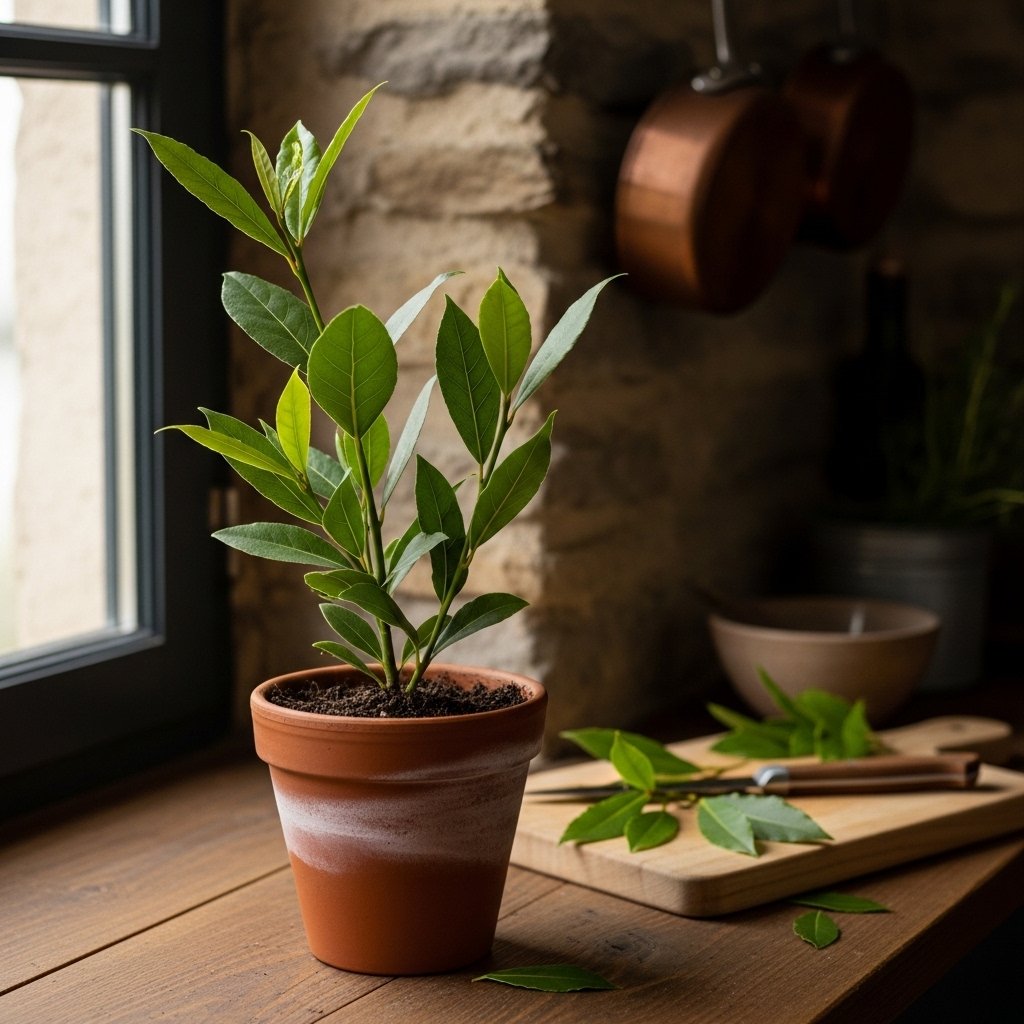 Bay leaf is a useful culinary herb that also works as a natural insect repellent. Its strong scent keeps cockroaches, flies, and moths away. It can be grown in small pots and maintained easily indoors. Bay leaves are widely used in cooking, adding extra value to this plant. It prefers moderate sunlight and well-drained soil.