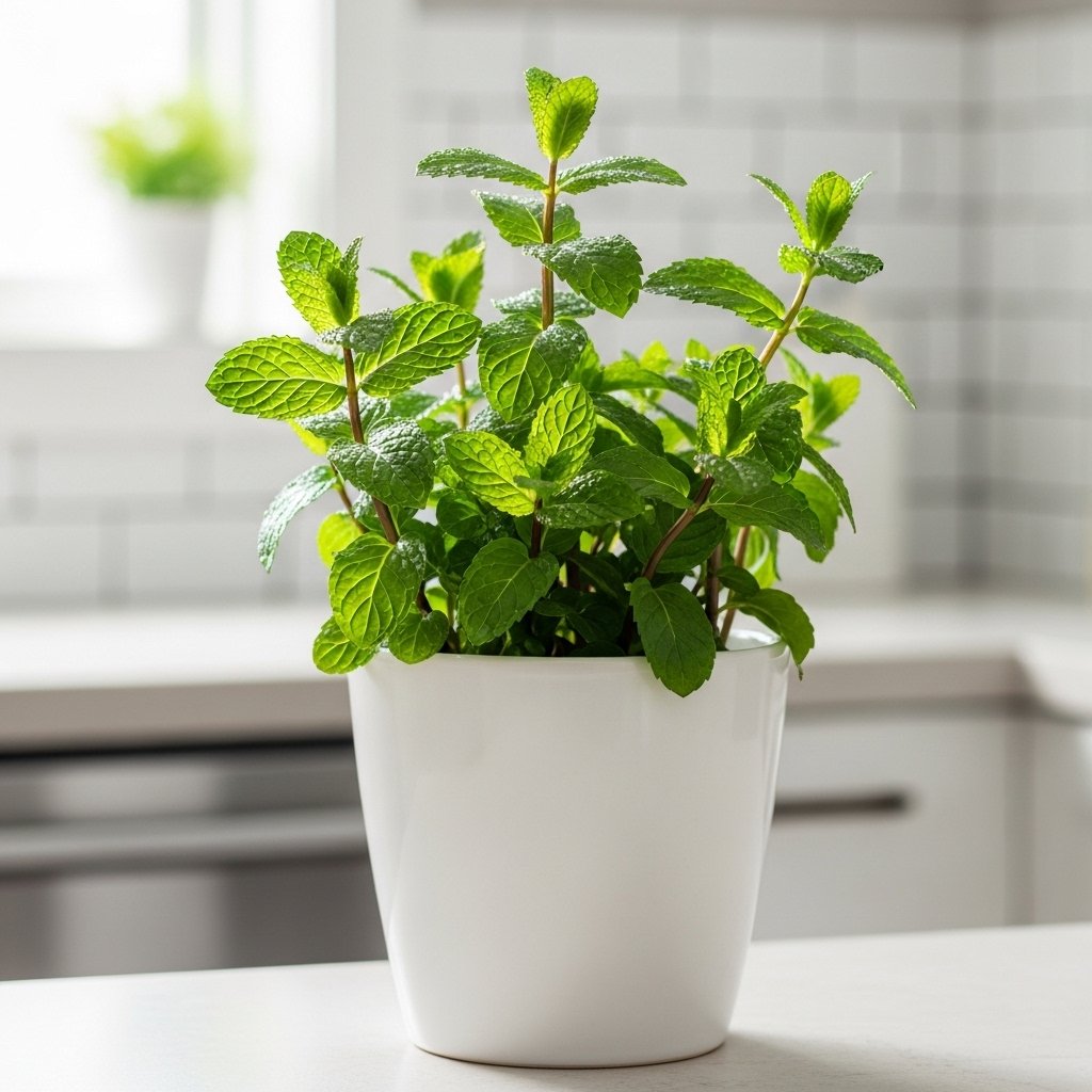 Mint is a fast-growing plant that naturally repels ants, mosquitoes, and flies. Its refreshing scent makes it perfect for indoor spaces like kitchens and bathrooms. Mint is very easy to grow and requires minimal maintenance. It prefers indirect sunlight and moist soil for healthy growth. You can also use mint leaves in drinks and teas.