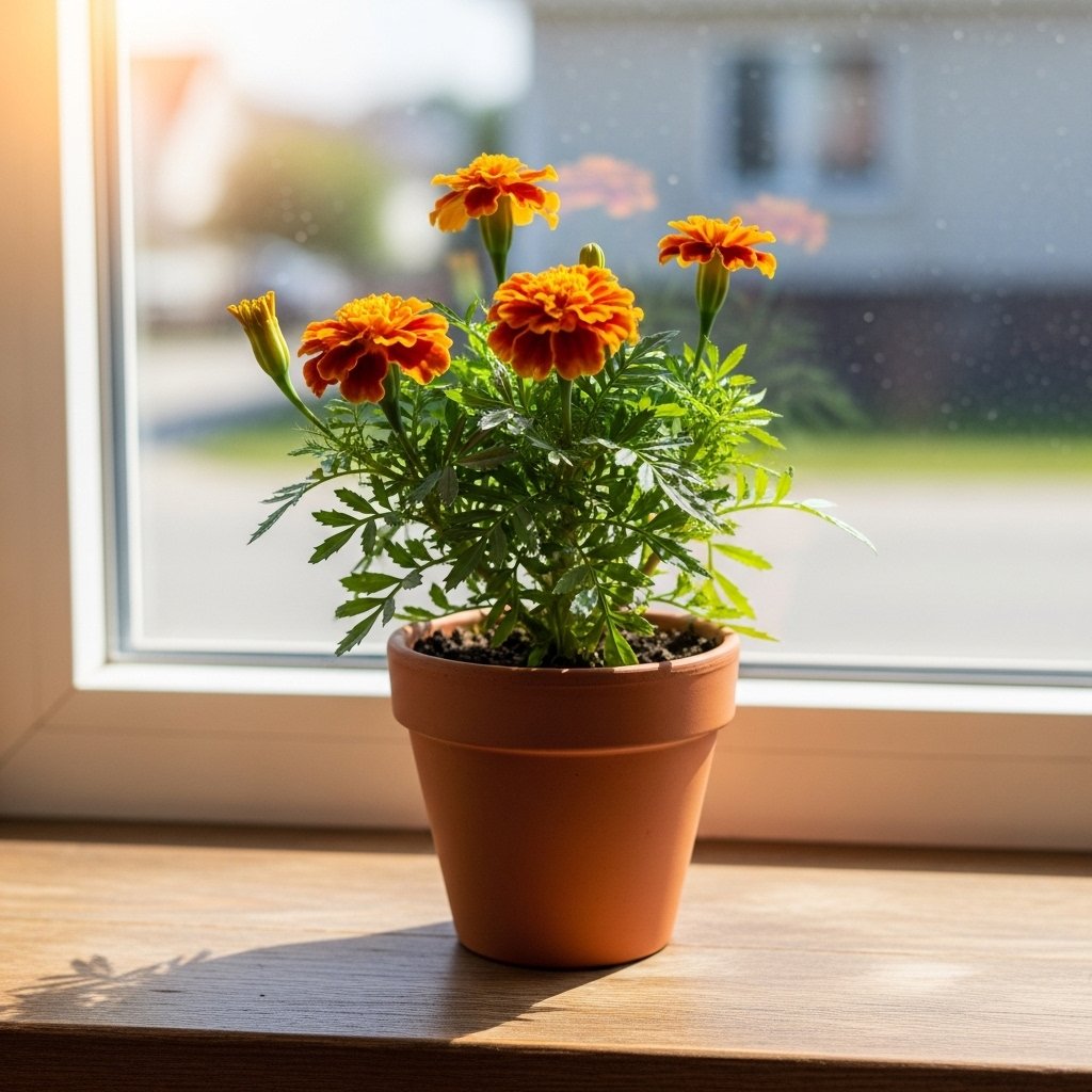 Marigolds are bright, beautiful flowers that also act as insect repellents. They release a scent that deters mosquitoes, aphids, and even some flies. These plants are easy to grow in small indoor pots near windows. Marigolds also add vibrant color and positivity to home decor. They require sunlight and occasional watering.