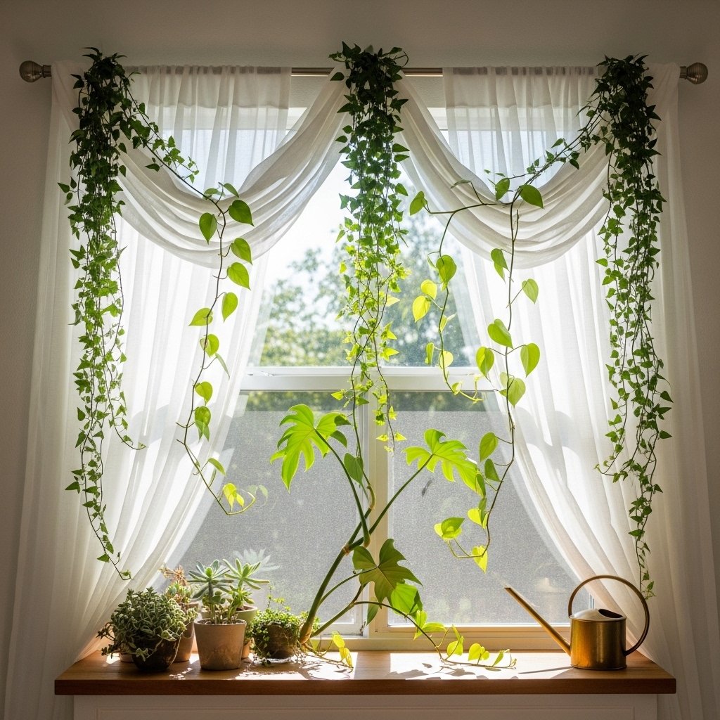 10. Trailing Plants on Window Curtain Rod