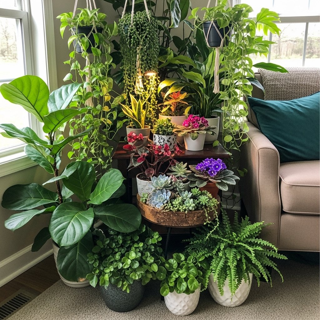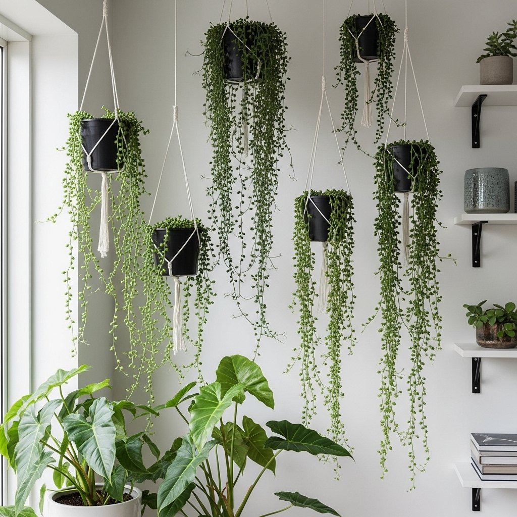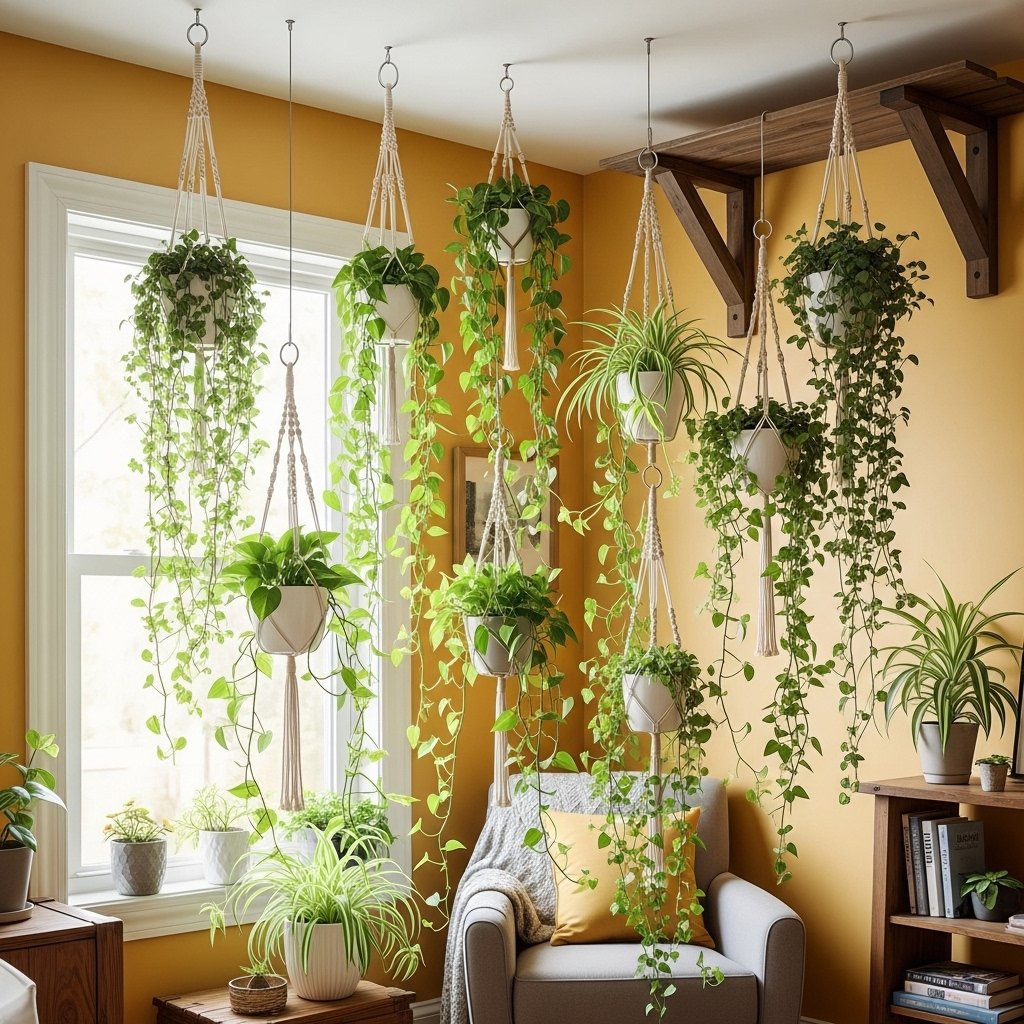 Indoor hanging gardens transform ceilings or walls into green masterpieces. Using multiple hanging pots at different heights can create a layered, cascading effect that feels lively and immersive. Ideal for apartments or rooms with limited floor space, hanging gardens maximize vertical area while adding style. Plants like trailing ivy, string of pearls, or philodendrons work perfectly for this setup. Indoor hanging gardens create a modern, chic look while bringing nature closer to eye level.