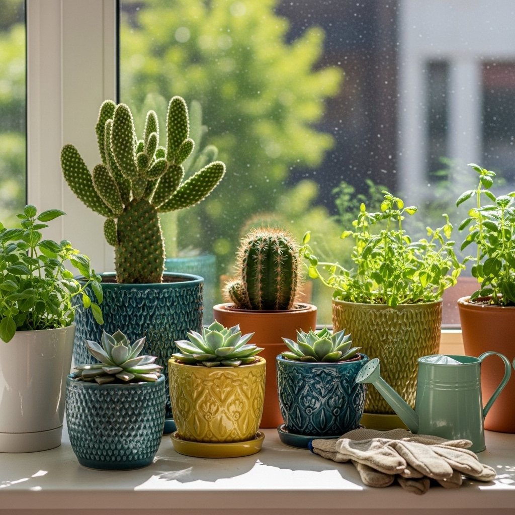 Window sill gardens are ideal for plants that thrive in natural sunlight. Small potted plants like succulents, cacti, or herbs can be placed on windowsills to brighten your interiors. This setup ensures the plants receive adequate light while adding charm to the room’s focal point. Choosing decorative pots or colorful containers can further enhance the visual appeal. A window sill garden is practical, beautiful, and perfect for bringing life to any sunny corner.