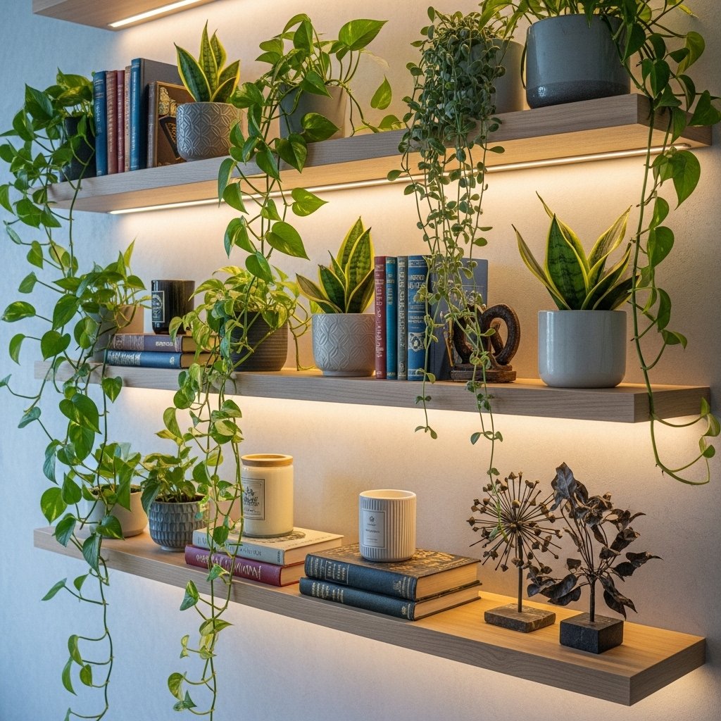 3. Elegant Plant Shelves for Layered Decor