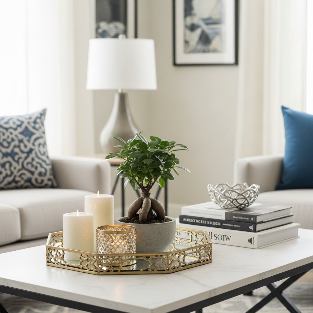 A small indoor plant on your coffee table can act as a subtle yet elegant centerpiece. Choosing compact plants like succulents or bonsai trees keeps the look clean and uncluttered. Pairing the plant with decorative trays, books, or candles enhances the styling. This setup adds a natural touch without overwhelming the table’s functionality. It’s a simple way to introduce greenery into your living room decor.
