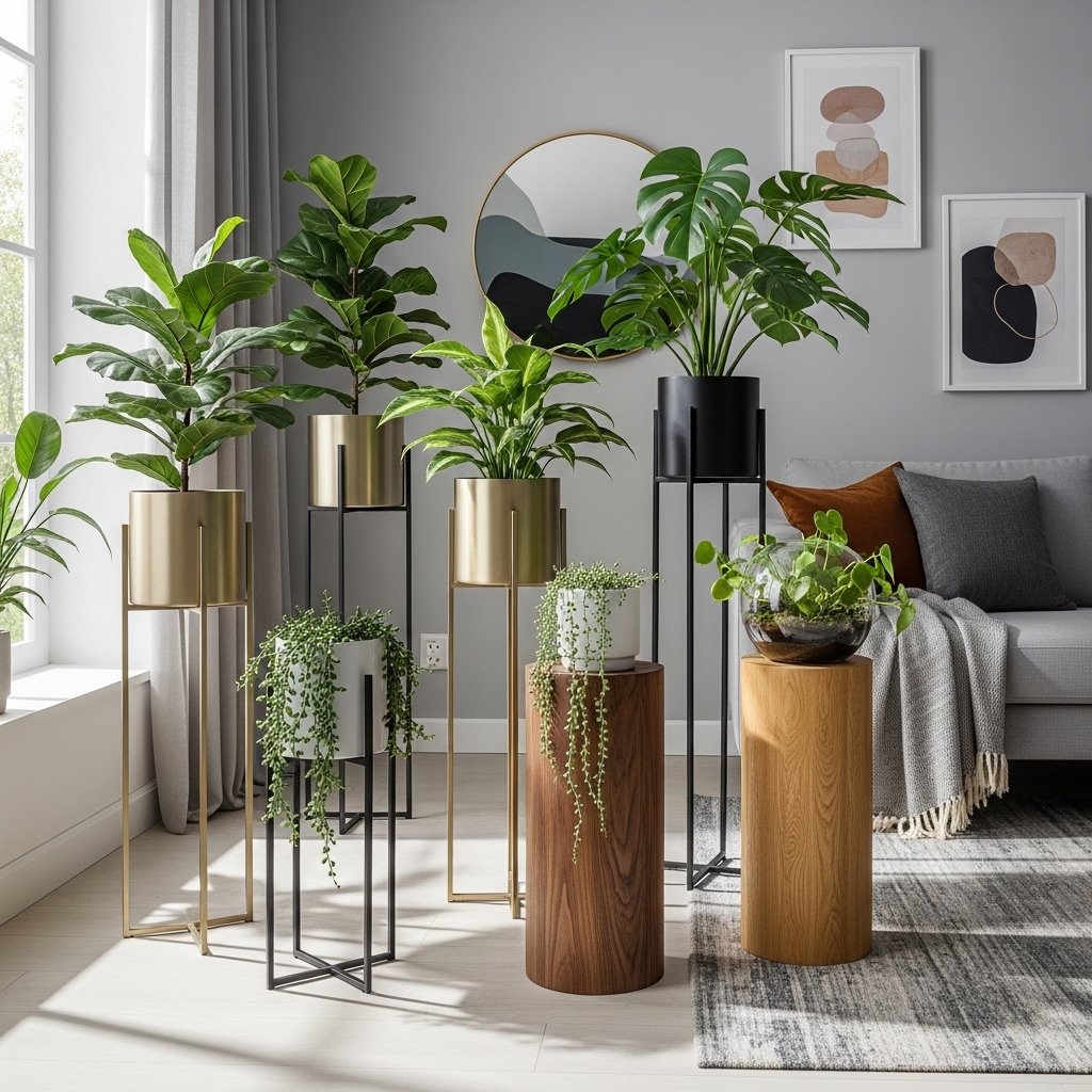 9. Elegant Plant Stands for Height Variation