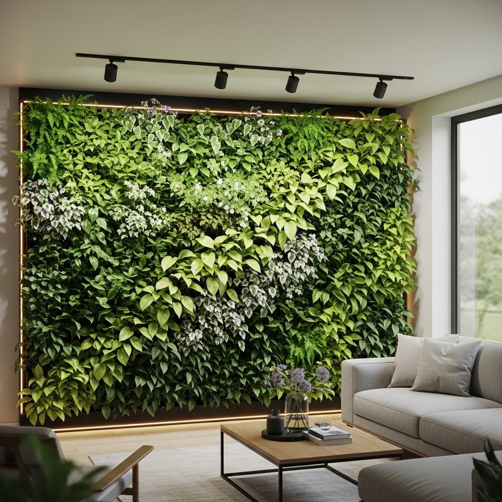 A vertical plant wall is a bold and stunning decor idea for plant lovers. You can create this using wooden frames, wall planters, or pocket organizers. This setup turns an empty wall into a vibrant green feature. It also maximizes space, especially in smaller living rooms. A vertical garden adds a luxurious and refreshing vibe to your home.