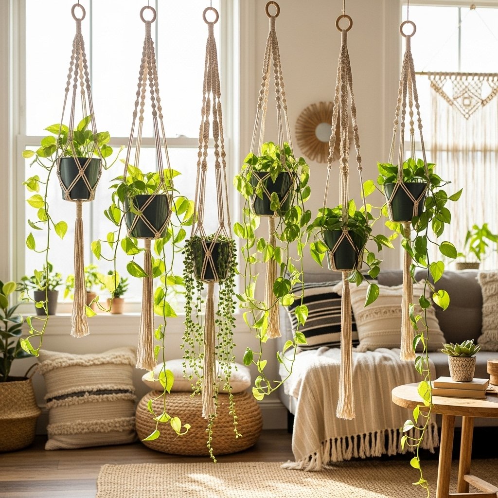 Macrame plant hangers bring a boho and artistic touch to your living room decor. Creating your own macrame hanger using cotton cords is both fun and cost-effective. These hangers are perfect for displaying plants near windows where they can receive natural light. They also free up floor and table space while adding texture to your decor. This DIY idea is ideal for those who love handcrafted and cozy interiors.